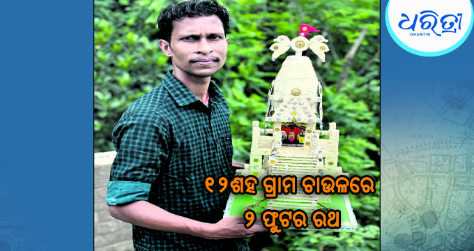 ପିପିଲି,୨୦ା୬(ପ୍ରଭାତ କୁମାର ମହାପାତ୍ର): ଭକ୍ତ ମହାପ୍ରଭୁଙ୍କ ପ୍ରତି ଭିନ୍ନ ପ୍ରକାରରେ ନିଜର ଭକ୍ତି ଦର୍ଶାଇଥାଏ। ଆଗକୁ ବିଶ୍ୱ ପ୍ରସିଦ୍ଧ ରଥଯାତ୍ରା ପାଇଁ ଶ୍ରୀକ୍ଷେତ୍ର ଧାମ ଚଳଚଞ୍ଚଳ ହୋଇଉଠିଛି। ଏହା ପୂର୍ବରୁ ପିପିଲି ବ୍ଲକ ଦର୍ଜିସାହି ଗ୍ରାମର ଯୁବ କାରିଗର ଅକ୍ଷୟ ମହାପାତ୍ର ଅରୁଆ ଚାଉଳରେ ରଥ ନିର୍ମାଣ କରି ମହାପ୍ରଭୁଙ୍କ ପ୍ରତି ଥିବା ତାଙ୍କ ଭକ୍ତିକୁ ଦର୍ଶାଇଛନ୍ତି।