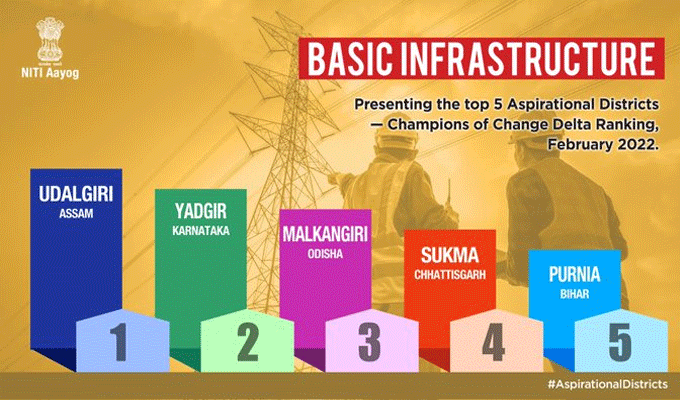 ଭୁବନେଶ୍ୱର,୧୩।୪(ବ୍ୟୁରୋ): ଦେଶର ଶ୍ରେଷ୍ଠ ୫ ଆକାଂକ୍ଷୀ ଜିଲା ତାଲିକାରେ ତୃତୀୟ ସ୍ଥାନରେ ମାଲକାନଗିରି ରହିଛି। ନିତି ଆୟୋଗଙ୍କ ଆକାଂକ୍ଷୀ ଜିଲା ତାଲିକାର ୩ୟ ସ୍ଥାନରେ ମାଲକାନଗିରି ଥିବା ବେଳେ ୧ମରେ ଆସାମର ଉଦଲଗିରି,୨ୟରେ କର୍ନାଟକର ୟାଦର୍ଗି, ୪ର୍ଥରେ ଛତିଶଗଡ଼ର ସୁକମା ଓ ୫ମ ସ୍ଥାନରେ ବିହାରର ପୂର୍ଣ୍ଣିଆ ଜିଲ୍ଲା ରହିଛି।