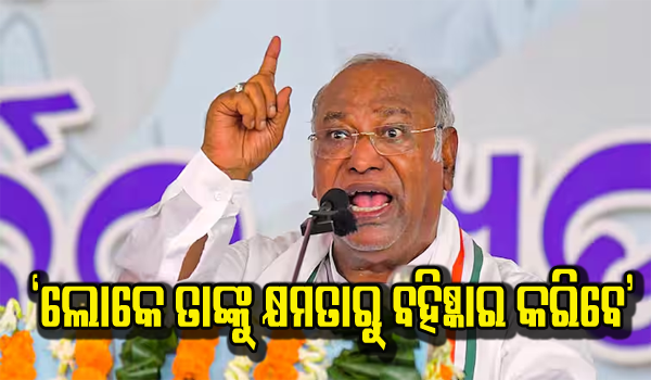 ନୂଆଦିଲ୍ଲୀ,୩୧।୫: କଂଗ୍ରେସ ଅଧ୍ୟକ୍ଷ ମଲ୍ଲିକାର୍ଜୁନ ଖାର୍ଗେ ପ୍ରଧାନମନ୍ତ୍ରୀ ନରେନ୍ଦ୍ର ମୋଦିଙ୍କୁ ଟାର୍ଗେଟ କରି କହିଛନ୍ତି, ଲୋକମାନେ ତାଙ୍କୁ କ୍ଷମତାରୁ ବହିଷ୍କାର କରିବେ। ଲୋକ ସଭା ନିର୍ବାଚନ ପାଇଁ ଏ ପର୍ଯ୍ୟନ୍ତ ଅନୁଷ୍ଠିତ ୬ଟି ପର୍ଯ୍ୟାୟ ଭୋଟରୁ ଜଣାପଡ଼ୁଛି ଯେ ବିରୋଧୀ ଦଳ ଇଣ୍ଡିଆ ସରକାର ଗଠନ କରିବ।