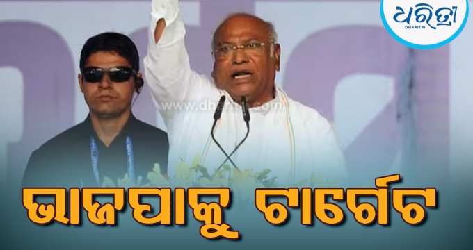 ନୂଆଦିଲ୍ଲୀ,୫।୪: କଂଗ୍ରେସ ଅଧ୍ୟକ୍ଷ ମଲ୍ଲିକାର୍ଜୁନ ଖାର୍ଗେ ଶୁକ୍ରବାର ଭାଜପାକୁ ଟାର୍ଗେଟ କରିଥିଲେ। ଭାଜପା ଯୋଗୁ ବିରୋଧୀ ଦଳର ନେତାମାନଙ୍କୁ ଜେଲରେ ରଖାଯାଉଛି ବୋଲି ସେ କହିଛନ୍ତି। ଦେଶରେ ସମ୍ବିଧାନ ବିପଦରେ ରହିଛି। ଏହା କରି ଭାଜପା ଆମକୁ ବା କଂଗ୍ରେସକୁ ହଇରାଣ କରିବାକୁ ଚେଷ୍ଟା କରୁଛି ବୋଲି ବି ସେ କହିଛନ୍ତି।