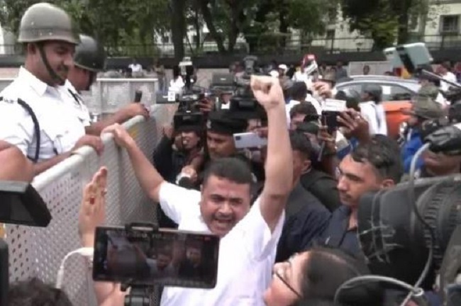 ଭାଜପା ନେତା ତଥା ପଶ୍ଚିମବଙ୍ଗ ବିଧାନସଭାରେ ନେତା ଥିବା ବିରୋଧୀ ଶୁଭେନ୍ଦୁ ଅଧିକାରୀଙ୍କୁ ପୋଲିସ ଗିରଫ କରିଛି । ଶୁଭେନ୍ଦୁ କହିଛନ୍ତି ଏହା ଶାନ୍ତିପୂର୍ଣ୍ଣ ଆନ୍ଦୋଳନ । ଏହା ବେକାରୀ ଓ ଭ୍ରଷ୍ଟାଚାର ବିରୋଧରେ ହଲ୍ଲାବୋଲ । ପଶ୍ଚିମବଙ୍ଗର ଜନତା ମମତାଙ୍କ ସପକ୍ଷରେ ନୁହେଁ । ସେଥିପାଇଁ ସେ ପଶ୍ଚିମବଙ୍ଗରେ ଉତ୍ତର କୋରିଆ ଭଳି ଏକଛତ୍ରବାଦ ଶାସନ ଚଳାଇଛନ୍ତି । ଶୁଭେନ୍ଦୁଙ୍କ ବ୍ୟତୀତ ରାହୁଲ ସିହ୍ନା ଓ ଲକେଟ ଚାଟାର୍ଜୀଙ୍କୁ ବି ଗିରଫ କରାଯାଇଛି ।