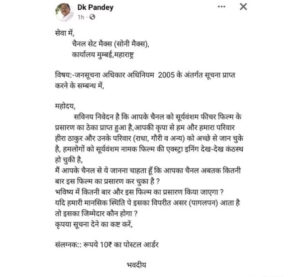 ପରବର୍ତ୍ତୀ ସମୟରେ, ଏହି ବ୍ୟକ୍ତି ତାଙ୍କ ଚିଠିରେ ଲେଖିଛନ୍ତି, ଆପଣଙ୍କ ଚ୍ୟାନେଲ ଏହି ଫିଲ୍ମକୁ କେତେଥର ଟେଲି ପ୍ରସାରଣ କରିଛି? ଭବିଷ୍ୟତରେ ଏହି ଫିଲ୍ମ ଆଉ କେତେଥର ଟେଲିକାଷ୍ଟ ହେବ? ଯଦି ଏହା ଆମର ମାନସିକ ସ୍ଥିତି ଉପରେ ପ୍ରତିକୂଳ ପ୍ରଭାବ ପକାଇଥାଏ ତେବେ ଏଥିପାଇଁ କିଏ ଦାୟୀ ରହିବ? ଦୟାକରି ଜଣାନ୍ତୁ।