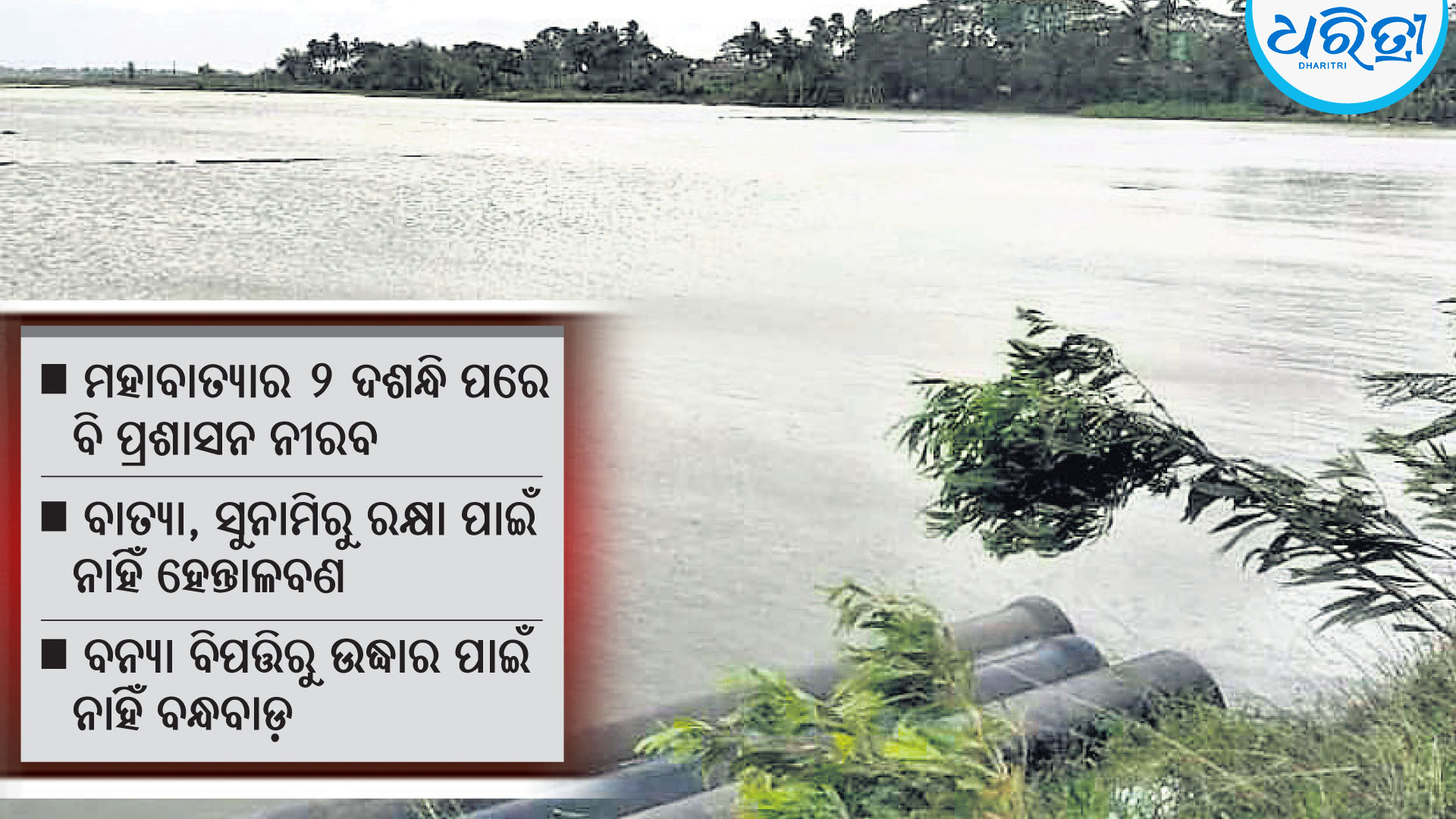 କେନ୍ଦ୍ରାପଡ଼ା,୨ା୬ (ଜଗନ୍ନାଥ ଧଳ): ୧୯୯୯ ମହାବାତ୍ୟାକୁ ଇତିମଧ୍ୟରେ ୨୫ ବର୍ଷ ବିତିଛି। ପ୍ରତିବର୍ଷ ବନ୍ୟା ବାତ୍ୟା ପରି ପ୍ରାକୃତିକ ବିପର୍ଯ୍ୟୟକୁ ସାମ୍ନା କରୁଥିବା କେନ୍ଦ୍ରାପଡ଼ା ଜିଲାବାସୀ ଏହି ମହାବାତ୍ୟାରେ ଧନଜୀବନ ହରାଇଛନ୍ତି। ଏହା ସତ୍ତ୍ୱେ ଏପରି ପ୍ରାକୃତିକ ବିପର୍ଯ୍ୟୟ ପ୍ରତି ପ୍ରଶାସକ ଅଥବା ରାଜନେତା ସଚେତନ ହୋଇନାହାନ୍ତି। ସାମୁଦ୍ରିକ ଝଡ଼ ପୂର୍ବରୁ ଉପାନ୍ତ ଅଞ୍ଚଳରୁ ଲକ୍ଷାଧିକ ଲୋକଙ୍କୁ ସ୍ଥାନାନ୍ତର ଓ ରିଲିଫ ବଣ୍ଟନରେ ସୀମିତ ରଖାଯାଉଥିବାବେଳେ ସାମାନ୍ୟ ବନ୍ୟା ପରିସ୍ଥିତିରେ ଜିଲାର ୫୫ ଗ୍ରାମ ଜଳବନ୍ଦୀ ହେଉଛି। ବନ୍ୟା ବିପତ୍ତିରୁ ଉଦ୍ଧାର ପାଇଁ ବନ୍ଧବାଡ଼ର ନିର୍ମାଣ, ବାତ୍ୟା ଓ ସୁନାମୀ ସମୟରେ ସୁରକ୍ଷା ପ୍ରାଚୀର ଭାବେ ଠିଆ ହେଉଥିବା ହେନ୍ତାଳ ବଣ ପ୍ରତି ନିଘା ନାହିଁ। ସାମୁଦ୍ରିକ ଝଡ଼ ୟାସ ଓ ଦାନା ସମୟରେ ମିଳିଥିବା ସରକାରୀ ତଥ୍ୟ ଜିଲା ବିକାଶର କଟୁ ସତ୍ୟକୁ ପଦାକୁ ଆଣିଛି ବୋଲି ବହୁ ବୁଦ୍ଧିଜୀବୀ ମତ ଦେଇଛନ୍ତି। ୨୦୨୧ ମସିହାର ସାମୁଦ୍ରିକ ଝଡ଼ ୟାସ ଓ ୨୦୨୪ର ଦାନାରେ କେନ୍ଦ୍ରାପଡ଼ା ଜିଲା ପ୍ରଭାବିତ ହୋଇଥିଲା। ତେବେ ରାଜନଗର ଓ ମହାକାଳପଡ଼ା ବ୍ଲକ ଅଞ୍ଚଳରେ ପ୍ରାୟ ୧୦୦ରୁ ୧୨୦ କିଲୋମିଟର ପବନ ଘଣ୍ଟା ପ୍ରତି ହୋଇଥିବା ଯୋଗୁ ଜିଲାର ବିଶେଷ କ୍ଷତି ହୋଇନାହିଁ। ଏହି ସାମୁଦ୍ରିକ ଝଡ଼ର ବେଗ ଆକଳନ ଅନୁଯାୟୀ ୧୮୫ କିଲୋମଟିରକୁ ବୃଦ୍ଧି ପାଇଥିଲେ ବହୁ ମୃତାହତ ହେବା ସହ ତଟରକ୍ଷା ଏକ ପ୍ରଶ୍ନବାଚୀ ସୃଷ୍ଟି କରିଥାନ୍ତା। ଅପରପକ୍ଷରେ ସୁରକ୍ଷା ଦୃଷ୍ଟିରୁ ଜିଲାର ଲକ୍ଷାଧିକ ଲୋକଙ୍କୁ ଆଶ୍ରୟସ୍ଥଳକୁ ନିଆଯାଇଥିଲା। ଶୁଖିଲା ଓ ରନ୍ଧ୍ୟା ଖାଦ୍ୟ ପ୍ରଦାନ, ପାନୀୟ ଜଳ ବ୍ୟବସ୍ଥା, ମହାମାରୀ ପାଇଁ ମାସ୍କ ବଣ୍ଟନଠାରୁ ଆରମ୍ଭ କରି ବହୁ ଉଦ୍ଧାରକାରୀ ଦଳ ନିୟୋଜିତ ବରିଷ୍ଠ ଆଇଏଏସ୍ ଅଧିକାରୀଙ୍କ ନେତୃତ୍ୱରେ ପରିଚାଳନା କରାଯାଇଥିଲା।
