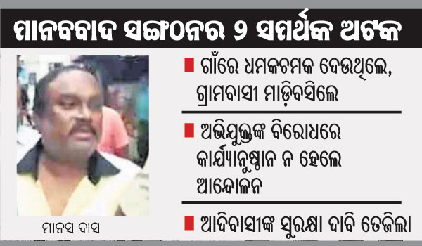 ସୂଚନାଯୋଗ୍ୟ, ସମ୍ପ୍ରତି ମାନସ ଦାସ ଜେଲ୍ରେ ଥିବାବେଳେ ତାଙ୍କ ପୁଅ ମନୋରଞ୍ଜନ ଜାମିନରେ ଆସି ଘରେ ରହିଛନ୍ତି। ତେଣୁ ପୁଅ ମାଧ୍ୟମରେ ମାନସ ପୁଣି ନିଜ ସଙ୍ଗଠନକୁ ସକ୍ରିୟ କରିବା ପାଇଁ ଉଦ୍ୟମ ଚଳାଇଥିବା ସାଧାରଣରେ ଆଲୋଚନା ହେଉଛି। ପୂର୍ବରୁ ୧୫ଟି ସଙ୍ଗଠନକୁ ନେଇ ଗଠିତ ମିଳିତ କ୍ରିୟାନୁଷ୍ଠାନ କମିଟି ମାନବବାଦ ସଙ୍ଗଠନ ତଥା ରାଷ୍ଟ୍ରୀୟ ସାମାଜିକ ନ୍ୟାୟ ମଞ୍ଚକୁ ଅସିଦ୍ଧ ଘୋଷଣା ଏବଂ ଏହି ସଙ୍ଗଠନ ସଦସ୍ୟଙ୍କୁ ଗିରଫ କରାଯିବାକୁ ଦାବି କରିଥିଲେ। ସେହିପରି ୪ଦିନ ତଳେ କମିଟି ପକ୍ଷରୁ ଜିଲା ପ୍ରଶାସନ ନିକଟରେ ଏହି ଦାବି କରାଯାଇଥିଲା। ଏବେ ପୁଣି ସେହି ଦାବି ଉଠିଛି। ଆଦିବାସୀ ନେତା ଦିବାକର ଭୋଇ ଏବଂ ବସ୍ତି ସୁରକ୍ଷା କମିଟି ସମ୍ପାଦକ ଜିତେନ୍ଦ୍ର ବେହେରା ତୁରନ୍ତ ସମ୍ପୃକ୍ତ ଅନୁଷ୍ଠାନକୁ ଅସିଦ୍ଧ ଘୋଷଣା କରାଯିବା ଏବଂ ଅଭିଯୁକ୍ତମାନଙ୍କ ବିରୋଧରେ କଡ଼ା କାର୍ଯ୍ୟାନୁଷ୍ଠାନ ସହ ଆଦିବାସୀଙ୍କ ସୁରକ୍ଷା ଦାବି କରିଛନ୍ତି। ନଚେତ ଆଦିବାସୀ ସଙ୍ଗଠନ ଏବଂ ଗ୍ରାମବାସୀ ରାସ୍ତାକୁ ଓହ୍ଲାଇବେ ବୋଲି ଚେତାବନୀ ଦେଇଛନ୍ତି। ଅଭିଯୋଗର ତଦନ୍ତ ପରେ କାର୍ଯ୍ୟାନୁଷ୍ଠାନ ହେବ ବୋଲି ଏସ୍ପି ରାଜକିଶୋର ଦୋରା କହିଛନ୍ତି।