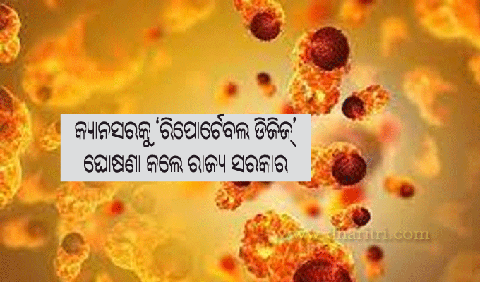 ଭୁବନେଶ୍ୱର, ୨୦।୧୦(ବ୍ୟୁରୋ): ଓଡ଼ିଶାରେ କ୍ୟାନ୍ସରକୁ ‘ରିପୋର୍ଟେବଲ ଡିଜିଜ୍’ ଭାବେ ରାଜ୍ୟ ସରକାର ବୁଧବାର ଘୋଷଣା କରିଛନ୍ତି। ଏ ନେଇ ସ୍ବାସ୍ଥ୍ୟ ଓ ପରିବାର କଲ୍ୟାଣ ବିଭାଗ ପକ୍ଷରୁ ଏକ ବିଜ୍ଞପ୍ତି ପ୍ରକାଶ ପାଇଛି। ଦେଶରେ କର୍କଟ ରୋଗର ନିରାକରଣ, ନିୟନ୍ତ୍ରଣ ପାଇଁ ରୋଗୀଙ୍କ ତଥ୍ୟ ରଖିବା ବାଧ୍ୟତାମୂଳକ ବୋଲି ଇଣ୍ଡିଆନ କାଉନ୍ସିଲ ଅଫ୍ ମେଡିକାଲ ରିସର୍ଚ୍ଚ(ଆଇସିଏମ୍ଆର୍) ପକ୍ଷରୁ ସୁପାରିସ କରାଯାଇଛି। ଏସବୁକୁ ଦୃଷ୍ଟିରେ ରଖି ରାଜ୍ୟ ସରକାର କର୍କଟ ରୋଗକୁ ଗୁରୁତ୍ୱ ଦେବା ସହିତ ରୋଗୀଙ୍କ ତଥ୍ୟ ଦେବା ବାଧ୍ୟତାମୂଳକ କରିଛନ୍ତି।