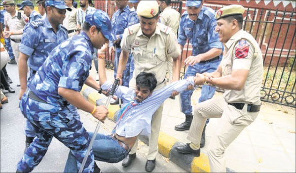 ନୂଆଦିଲ୍ଲୀ,୨୫ା୬: ଡାକ୍ତରୀ ପାଠ୍ୟକ୍ରମରେ ନାମଲେଖା ପାଇଁ ଚଳିତ ବର୍ଷ ଅନୁଷ୍ଠିତ ଏନ୍ଇଇଟି-ୟୁଜି ପରୀକ୍ଷାରେ ବ୍ୟାପକ ଅନିୟମିତତା ଏବଂ ପ୍ରଶ୍ନପତ୍ର ପ୍ରଘଟ ପ୍ରତିବାଦରେ ସୋମବାର ପାର୍ଲାମେଣ୍ଟ ଅଭିଯାନ ବେଳେ ୨ ଡଜନ୍ରୁ ଅଧିକ ଛାତ୍ରୀଛାତ୍ରଙ୍କୁ ପୋଲିସ ଅଟକ ରଖିଛି। ସେମାନଙ୍କ ମଧ୍ୟରେ କଂଗ୍ରେସ ସ୍ବୀକୃତିପ୍ରାପ୍ତ ଛାତ୍ର ସଂଗଠନ ନ୍ୟାଶନାଲ ଷ୍ଟୁଡେଣ୍ଟସ୍ ୟୁନିୟନ ଅଫ୍ ଇଣ୍ଡିଆ (ଏନ୍ଏସ୍ୟୁଆଇ) ସଦସ୍ୟ ରହିଛନ୍ତି। ଏନ୍ଇଇଟି-ୟୁଜି ଅନିୟମିତତା ଏବଂ ୟୁଜିସି-ନେଟ୍ ପରୀକ୍ଷା ବାତିଲର ପ୍ରତିବାଦରେ ଛାତ୍ରୀଛାତ୍ର ନୂଆଦିଲ୍ଲୀର ଯନ୍ତରମନ୍ତରଠାରେ ବିକ୍ଷୋଭ ପ୍ରଦର୍ଶନ କରିଥିଲେ। ଅଷ୍ଟାଦଶ ଲୋକ ସଭାର ପ୍ରଥମ ଅଧିବେଶନ ସୋମବାର ଆରମ୍ଭ ହୋଇଥିବାବେଳେ ଏନ୍ଇଇଟି ବିଭ୍ରାଟ ପ୍ରତିବାଦରେ ଏନ୍ଏସ୍ୟୁଆଇ ସଦସ୍ୟମାନେ ପାର୍ଲାମେଣ୍ଟ ଅଭିଯାନ ପାଇଁ ଯୋଜନା କରିଥିଲେ। ଏଥିପାଇଁ ସେମାନେ ଯନ୍ତରମନ୍ତରଠାରେ ବହୁସଂଖ୍ୟାରେ ଏକାଠି ହୋଇଥିଲେ। ବିକ୍ଷୋଭ ପୂର୍ବରୁ ପୋଲିସ ଉକ୍ତ ଅଞ୍ଚଳରେ ବ୍ୟାରିକେଡ୍ ଲଗାଇବା ସହ ବ୍ୟାପକ ସୁରକ୍ଷା କର୍ମୀଙ୍କୁ ମୁତୟନ କରାଯାଇଥିଲା। କେତେକ ଛାତ୍ର ବ୍ୟାରିକେଡ୍ ଅତିକ୍ରମ କରିବାକୁ ଉଦ୍ୟମ କରିବାରୁ ପୋଲିସ ସେମାନଙ୍କୁ ଧରିନେଇ ବିଭିନ୍ନ ଥାନାରେ ଅଟକ ରଖିଛି।