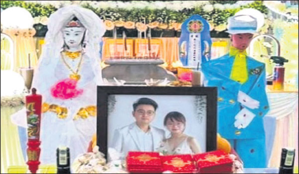 କୁଆଲାଲ୍ମ୍ପୁର: ବିବାହର ଠିକ୍ ପୂର୍ବରୁ ମାଲେସିଆର ୟାଙ୍ଗ୍ ଜିଙ୍ଗ୍ଶାନ(୩୧) ଏବଂ ଲି ଜୁଇଙ୍ଗ୍(୩୨) ନାମକ ଏକ ପ୍ରେମୀ ଯୁଗଳଙ୍କର ଦୁର୍ଘଟଣାରେ ମୃତ୍ୟୁ ହୋଇଥିଲା। ଉଭୟେ ପ୍ରାୟ ୩ ବର୍ଷ ଧରି ଲିଭ୍-ଇନ୍-ରିଲେଶନ୍ଶିପ୍ରେ ଏକାଠି ରହିଥିଲେ। ଖୁବ୍ଶୀଘ୍ର ଉଭୟଙ୍କର ବିବାହ କରିବାକୁ ସେମାନଙ୍କ ପରିବାରବର୍ଗ ସ୍ଥିର କରିଥିଲେ। ମୃତ୍ୟୁପରେ ସେମାନଙ୍କ ଇଚ୍ଛାକୁ ସମ୍ମାନ ଜଣାଇ ପରିବାର ପକ୍ଷରୁ ଉଭୟଙ୍କର ବିବାହ ସମ୍ପନ୍ନ କରାଯାଇଛି। କୁଆଲାଲ୍ମ୍ପୁରର ଏକ ହଲ୍ରେ ଏହି ବିବାହ ଅନୁଷ୍ଠିତ ହୋଇଯାଇଛି। ବିବାହରେ ଉଭୟ ୟାଙ୍ଗ୍ ଓ ଲି’ଙ୍କ ଫଟୋରେ ଫୁଲମାଳ ଚଢ଼ାଯିବା ସହ ନିକଟରେ ସେମାନଙ୍କ ଷ୍ଟାଚ୍ୟୁ ରଖାଯାଇଥିବା ଦେଖିବାକୁ ମିଳିଛି।