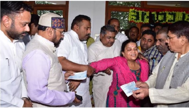 ଆଗ୍ରା,୨୪।୧୧: ଉତ୍ତରପ୍ରଦେଶର କ୍ୟାବିନେଟ ମନ୍ତ୍ରୀ ଯୋଗେନ୍ଦ୍ର ଉପାଧ୍ୟାୟ ରାଜୌରୀରେ ଶହୀଦ ହୋଇଥିବା କ୍ୟାପଟେନ ଶୁଭମ ଗୁପ୍ତାଙ୍କ ପୈତୃକ ଘର ତାଜଗଞ୍ଜର ପ୍ରତୀକ ଏନକ୍ଲେଭରେ ଶୁକ୍ରବାର ପହଞ୍ଚିଛନ୍ତି। କ୍ୟାବିନେଟ ମନ୍ତ୍ରୀ ଶହୀଦଙ୍କ ମାଙ୍କୁ ୫୦ ଲକ୍ଷ ଟଙ୍କା ଚେକ ଦେଇଛନ୍ତି।