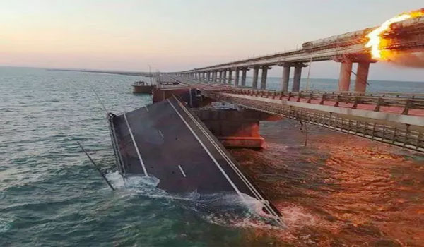 ମସ୍କୋ,୮।୧୦: ରୁଷିଆ ଓ ୟୁକ୍ରେନ୍ ମଧ୍ୟରେ ଯୁଦ୍ଧ ଜାରି ରହିଛି। ଯୁଦ୍ଧ ସମୟରେ ରୁଷିଆ କିଭ୍ର ଅନେକ ଅଞ୍ଚଳକୁ ଜବରଦଖଲ କରିନେଇଛନ୍ତି। ଇତିମଧ୍ୟରେ ରୁଷିଆ ଜବରଦଖଲ କରିଥିବା କ୍ରିମିଆରେ ଶନିବାର ବଡ଼ ବିସ୍ଫୋରଣ ଘଟିଛି। ଏହି ବିସ୍ଫୋରଣ କ୍ରିମିଆ ଓ ରୁଷିଆ ମଧ୍ୟରେ ଥିବା ଏକ ପୋଲ ଉପରେ ହୋଇଛି। ଏଥିରେ ବହୁ କ୍ଷୟକ୍ଷତି ହୋଇଥିବା ଜଣାପଡ଼ିଛି। ଏହି ଦୁର୍ଘଟଣାରେ ରାସ୍ତାର ଗୋଟିଏ ପାର୍ଶ୍ୱର ଏକ ଅଂଶ ଭୁଷୁଡ଼ିପଡ଼ିଥିବା ବେଳେ ଟ୍ରେନରେ ନିଆଁ ଲାଗିଯାଇଛି। ଉକ୍ତ ପୋଲ ଭୁଷିଡ଼ିପଡ଼ିଥିବାରୁ ଆଗାମୀ କିଛି ଦିନ ଯାଏ ଯାତାୟତ ବାଧାପ୍ରାପ୍ତ ରହିବ। ତେବେ ବିସ୍ଫୋରଣର କାରଣ ଏପର୍ଯ୍ୟନ୍ତ ଜଣାପଡ଼ିନାହିଁ। ସୂଚନାଯୋଗ୍ୟ, ଶନିବାର କ୍ରିମିଆର ଉକ୍ତ ପୋଲ ଉପରେ ହଠାତ୍ ବିସ୍ଫୋରଣ ହୋଇଥିଲା। ଏହି ବିସ୍ଫୋରଣ ୟୁକ୍ରେନ ଦ୍ୱାରା କରାଯାଇଛି ବୋଲି କୁହାଯାଉଛି। ହେଲେ ୟୁକ୍ରେନ୍ ପକ୍ଷରୁ ଏପର୍ଯ୍ୟନ୍ତ କୌଣସି ସ୍ପଷ୍ଟିକରଣ ଆସିନାହିଁ।