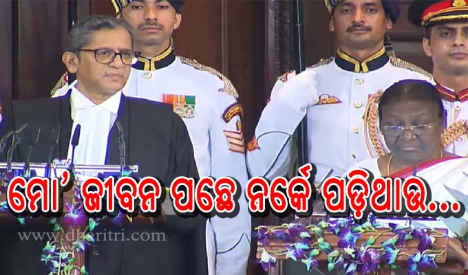 ନୂଆଦିଲ୍ଲୀ/ଭୁବନେଶ୍ୱର,୨୫ା୭(ବ୍ୟୁରୋ): ସୋମବାର ଦେଶର ପଞ୍ଚଦଶ ରାଷ୍ଟ୍ରପତି ଭାବେ ଓଡ଼ିଆ ଝିଅ ଦ୍ରୌପଦୀ ମୁର୍ମୁ ଶପଥ ନେଇଛନ୍ତି। ପାର୍ଲାମେଣ୍ଟର ସେଣ୍ଟ୍ରାଲ ହଲ୍ରେ ସୁପ୍ରିମକୋର୍ଟ ମୁଖ୍ୟ ବିଚାରପତି ଏନ୍.ଭି ରମନା ତାଙ୍କୁ ପଦ ଓ ଗୋପନୀୟତାର ଶପଥ ପାଠ କରାଇଛନ୍ତି।