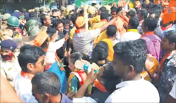 ବାରିପଦା ଅଫିସ,୧୧।୧୧: ମୟୂରଭଞ୍ଜ ଜିଲା ଭାଜପା ଯୁବ ମୋର୍ଚ୍ଚା ପକ୍ଷରୁ ବୁଧବାର ବାରିପଦା ସ୍ଥିତ ଏସ୍ପି ଅଫିସ ଘେରାଉ ସମୟରେ ଅଭାବନୀୟ ଘଟଣା ଘଟିଛି। ଭାଜପା କର୍ମୀମାନେ ପୋଲିସ ଉପରକୁ ଅଣ୍ଡାମାଡ଼ କରିଥିବା ବେଳେ ଠେଲାପେଲାରେ ୨ଜଣ କର୍ମୀ ଆହତ ହୋଇଛନ୍ତି। ପୋଲିସ ଉପରକୁ ଏଭଳି ଅଣ୍ଡାମାଡ଼ ଘଟଣାକୁ ଜିଲାର ବିଭିନ୍ନ ମହଲରୁ ନିନ୍ଦା କରାଯାଇଛି। ଭାଜପା ପକ୍ଷରୁ ଏହାକୁ ଅସ୍ବୀକାର କରାଯାଇଥିବା ବେଳେ ଜିଲା ରାଜନୀତି ସରଗରମ ହେବାରେ ଲାଗିଛି।
