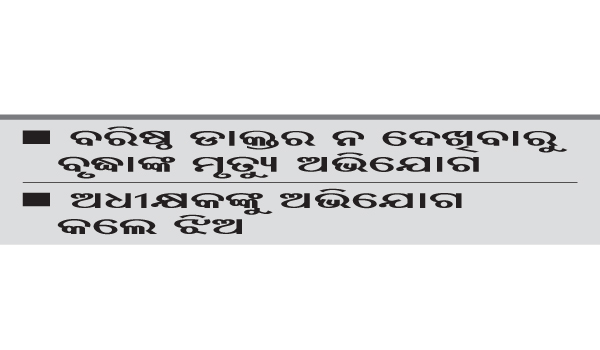 ବ୍ରହ୍ମପୁର ଅଫିସ,୧୭ା୧: ବ୍ରହ୍ମପୁର ବଡ ମେଡିକାଲ (ଏମ୍କେସିଜି)ରେ ଚିକିତ୍ସା ଅବହେଳାକୁ ନେଇ ଗୋଟିଏ ପରେ ଗୋଟିଏ ଅଘଟଣ ଘଟୁଥିବା ଅଭିଯୋଗ ହୋଇଆସୁଛି। ସୋମବାର ଏମ୍କେସିଜିରେ ଚିକିତ୍ସିତ ହେଉଥିବା ଜଣେ ବୃଦ୍ଧାଙ୍କର ଅବହେଳାରୁ ମୃତ୍ୟୁ ଘଟିଛି। ମୃତ ବୃଦ୍ଧା ଜଣଙ୍କ ଶୈଳବାଳା ପଟ୍ଟନାୟକ(୭୪)। ଚିକିତ୍ସା ଅବହେଳା ଯୋଗୁ ତାଙ୍କର ମୃତ୍ୟୁ ଘଟିଥିବା ନେଇ ଝିଅ ଓ ପୁଅଙ୍କ ସମେତ ପରିବାର ଲୋକେ ଅଭିଯୋଗ ଆଣିଛନ୍ତି।