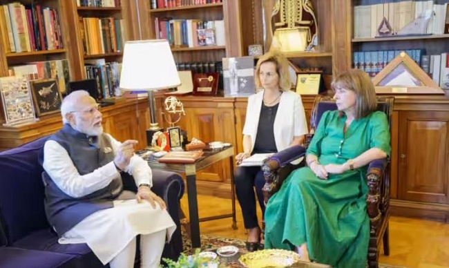 ପ୍ରଧାନମନ୍ତ୍ରୀ ନରେନ୍ଦ୍ର ମୋଦି ଶୁକ୍ରବାର ଗ୍ରୀସ ଗସ୍ତ କରିଥିଲେ। ସେଠାରେ ସେ ତାଙ୍କ ପ୍ରତିପକ୍ଷଙ୍କ ସମେତ ଗ୍ରୀସର ବରିଷ୍ଠ ନେତାମାନଙ୍କୁ ଭେଟିଥିଲେ। ଏହି ସମୟରେ ସେ ଗ୍ରୀସର ପ୍ରଧାନମନ୍ତ୍ରୀ କିରିଆକୋସ ମିତସୋଟାକିସଙ୍କୁ ଭେଟିଥିଲେ। ସେ ତାଙ୍କୁ ମେଘାଳୟର ସଂସ୍କୃତି ବିଷୟରେ କହୁଥିବା ଏକ ଶାଲ ଉପହାର ଦେଇଥିଲେ।