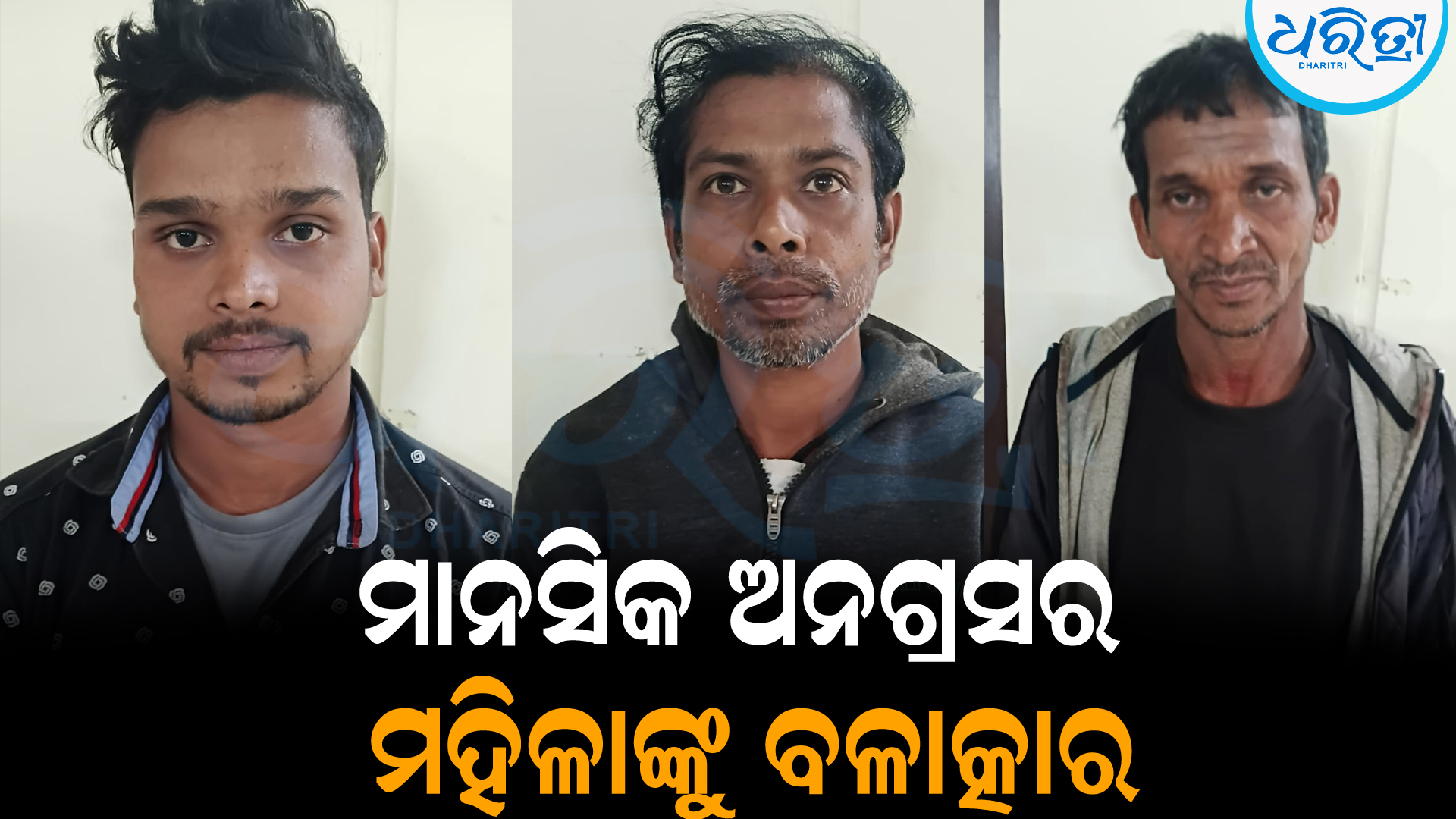 ଭେଡେନ,୧୪।୨(ହୃଷୀକେଶ ଖମାରୀ) – ବରଗଡ ଜିଲା ଭେଡେନ ଥାନା ଅଞ୍ଚଳରେ ଏକ ଅଭାବନୀୟ ଘଟଣା ଘଟିଛି। ଜଣେ ମାନସିକ ଅନଗ୍ରସର ମହିଳାଙ୍କୁ ବଳାତ୍କାର ଏବଂ ସମ୍ପୃକ୍ତ ମହିଳା ଗର୍ଭବତୀ ହୋଇଥିବା ଅଭିଯୋଗ ହୋଇଛି। ଏଭଳି ଏକ ଲଜ୍ଜାଜନକ ଘଟଣା ଆଲୋଡନ ଖେଳାଇ ଦେଇଥିବାବେଳେ ପୋଲିସ ଉକ୍ତ ଘଟଣାରେ ୩ ଜଣଙ୍କୁ ଗିରଫ କରିଛି। ଗିରଫ ଅଭିଯୁକ୍ତମାନେ ହେଲେ, ଭେଡେନ ଥାନା ଡୁଙ୍ଗୁରିପାଲି ଗ୍ରାମର ବିକ୍ରମ ସରାଫ(୫୦), ପୁଅ ପପୁନ(୨୮) ଓ ଏବଂ ଜ୍ବାଇଁ ଅମ୍ବାଭୋନା ଥାନା ଲଖନପୁର ଗ୍ରାମର ପ୍ରତାପ ସରାଫ(୪୪) ।