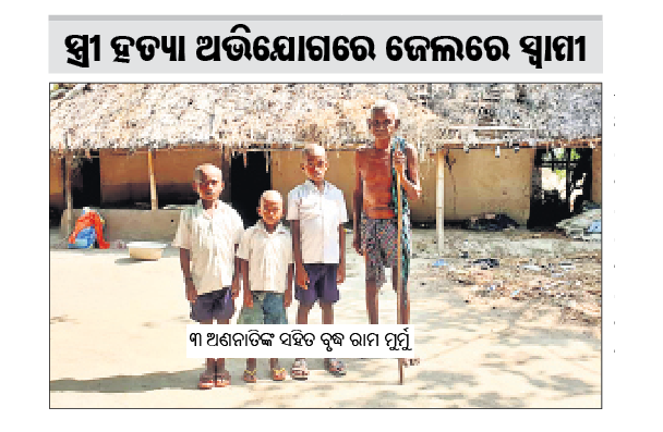 ସିମୁଳିଆ,୨୩।୫(ଡି.ଏନ.ଏ.): ବାଲେଶ୍ୱର ଜିଲା ସିମୁଳିଆ ଥାନା କହ୍ନେଇବିନ୍ଧା ପଞ୍ଚାୟତ ଅଧୀନ କଇଁଶୀ ଆଦିବାସୀ ସାହିର ରାମ ମୁର୍ମୁ ଗତ ୩ ତାରିଖରେ ସ୍ତ୍ରୀ ଦେଉଳାଙ୍କୁ ପିଟିପିଟି ହତ୍ୟା କରିବା ଅଭିଯୋଗରେ ଜେଲ ଯାଇଛନ୍ତି। ସେମାନଙ୍କ ୩ ନାବାଳକ ଶିଶୁପୁତ୍ର କୁଆଁର(୬) ଗୋବିନ୍ଦ(୮) ଓ ଡେରୁ(୯) ଏବେ ଅସହାୟ ହୋଇପଡ଼ିଛନ୍ତି। ଏହି ୩ ନାବାଳକ ସ୍ଥାନୀୟ ପ୍ରାଥମିକ ବିଦ୍ୟାଳୟରେ ପଢୁଛନ୍ତି। ରାମଙ୍କ ଜେଜେମା’ ଗିର୍ଥୀ(୬୫) ଓ ଜେଜେ ରାମ ମୁର୍ମୁ (୭୦) ତିନି ପିଲାଙ୍କ ଦାୟିତ୍ୱ ନେଇଥିଲେ ହେଁ ପରିବାରର ଦାରିଦ୍ର୍ୟତା ଯୋଗୁ ବିଦ୍ୟାଳୟର ମଧ୍ୟାହ୍ନଭୋଜନ ପିଲାମାନଙ୍କ ବଞ୍ଚତ୍ବାର ଏକ ମାତ୍ର ସାହା ହୋଇଛି। ଏପରିକି ଅର୍ଥ ଅଭାବରୁ ମୃତ ନାତୁଣୀ ବୋହୂର ଶୁଦ୍ଧିକ୍ରିୟା କରାଯାଇ ପାରି ନ ଥିବା ବୃଦ୍ଧ ରାମ ମୁର୍ମୁ କହିଛନ୍ତି।