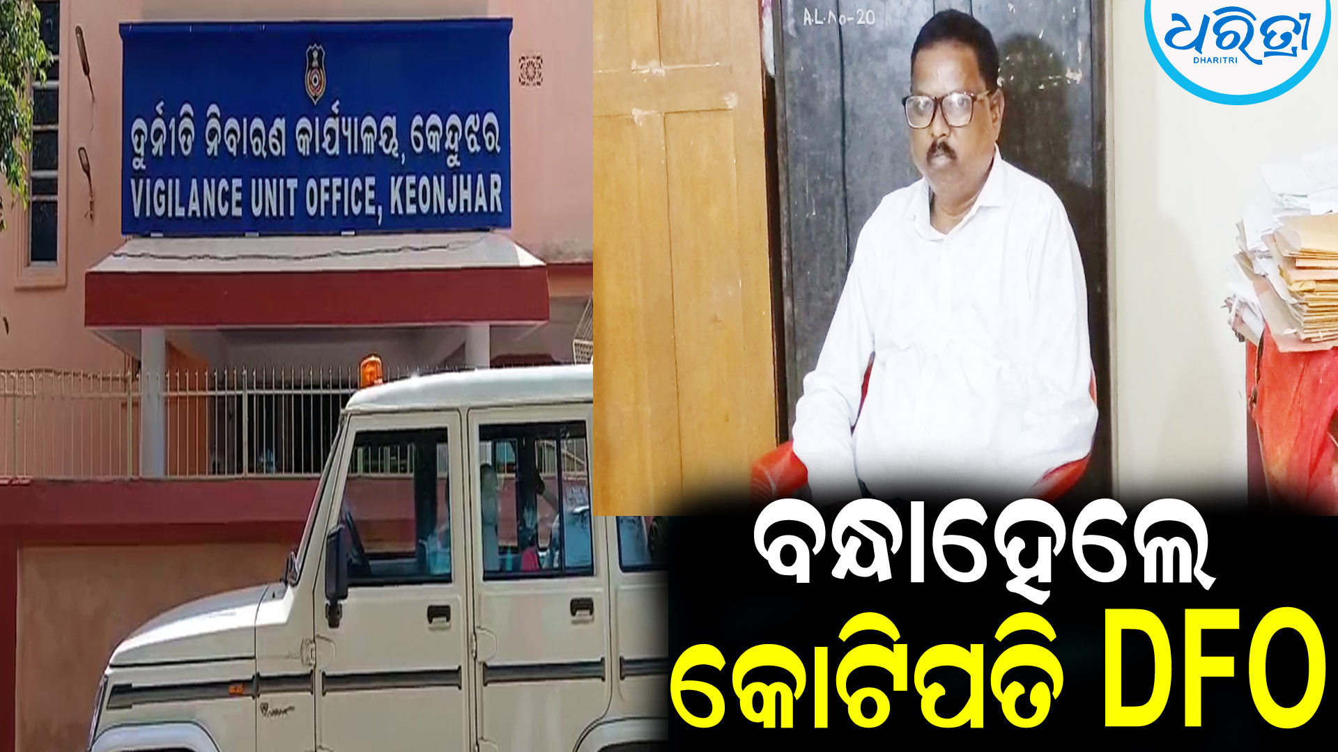 ଭୁବନେଶ୍ୱର,୨୨।୭:କେନ୍ଦୁଝର କେନ୍ଦୁପତ୍ର ଡିଭିଜନ DFO ନିତ୍ୟାନନ୍ଦ ନାୟକ ଶେଷରେ ଗିରଫ ହୋଇଛନ୍ତି। ଗିରଫ ପରେ ତାଙ୍କୁ କେନ୍ଦୁଝର ସ୍ବତନ୍ତ୍ର ଭିଜିଲାନ୍ସ କୋର୍ଟରେ ହାଜର କରାଯାଇଛି। ୩ ଦିନ ହେବ ନିତ୍ୟାନନ୍ଦଙ୍କ ବିଭିନ୍ନ ସ୍ଥାନରେ ଚଢାଉ ଜାରି ରଖିଥିଲା ଭିଜିଲାନ୍ସ ଟିମ। ୮ ଲକ୍ଷ ୫୦ ହଜାର ଟଙ୍କା ସହ ସରକାରୀ କ୍ବାର୍ଟର୍ସରୁ ମିଳିଛି ଗୋଟିଏ ବନ୍ଧୁକ ମିଳିଥିଲା। ତାଙ୍କ କ୍ବାର୍ଟର୍ସରୁ ଜବତ ୧୦ ଲକ୍ଷରୁ ଅଧିକ ଟଙ୍କା ଜବତ ହୋଇଥିଲା।