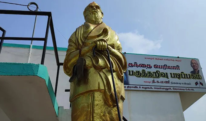 କୋଏମ୍ବାଟୁର,୯।୧: ତାମିଲନାଡୁର କୋଏମ୍ବାଟୁରରେ ସାମାଜିକ ସଂସ୍କାରକ ପେରିୟାର ଇଭି ରାମାସ୍ବାମୀଙ୍କ ପ୍ରତିମୂର୍ତ୍ତିକୁ ରବିବାର ପୂର୍ବାହ୍ନରେ କେହି ଦୁର୍ବୃତ୍ତ ଚପଲ ମାଳ ପିନ୍ଧାଯାଇଥିବା ଦେଖିବାକୁ ମିଳିଛି। ଭେଲାଲୋରର ପେରିୟାର ଅଧ୍ୟୟନ କେନ୍ଦ୍ର ସମ୍ମୁଖରେ ଥିବା ଏହି ପ୍ରତିମୂର୍ତ୍ତିରେ ତାଙ୍କ ମୁଣ୍ଡରେ ଗେରୁଆ ରଙ୍ଗ ବୋଳାଯାଇଛି। ଖବର ପାଇ ଦ୍ରାବିଡ଼ କାଜାଗାମ (ଡି.କେ) ସଦସ୍ୟ ଘଟଣାସ୍ଥଳରେ ପହଞ୍ଚତ୍ଥିଲେ। ଏ ସମ୍ପର୍କରେ ପୋଡାନୁର ପୋଲିସ ଏବଂ ଡି.କେ କର୍ମୀମାନେ ଏହି ପ୍ରତିମୂର୍ତ୍ତିକୁ ଯାଞ୍ଚ କରି ଚପଲ ବାହାର କରିଥିଲେ। ପରେ ଡି.କେ କର୍ମୀମାନେ ମୂର୍ତ୍ତି ସମ୍ମୁଖରେ ବିକ୍ଷୋଭ ପ୍ରଦର୍ଶନ କରିଥିଲେ। ତେବେ ଅଭିଯୁକ୍ତଙ୍କୁ ଧରାଯିବ ବୋଲି ପୋଲିସ ପ୍ରତିଶ୍ରୁତି ଦେବା ପରେ ବିକ୍ଷୋଭକାରୀମାନେ ଧାରଣାସ୍ଥଳରୁ ଉଠିଥିଲେ।