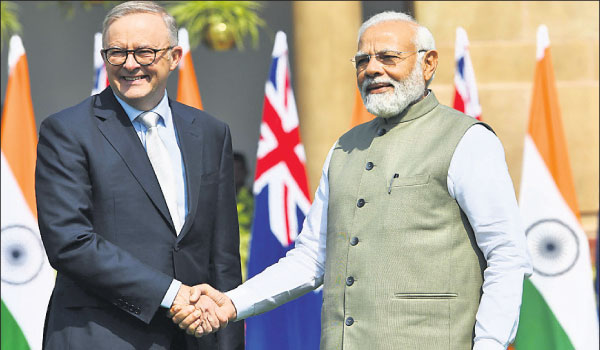 ନୂଆଦିଲ୍ଲୀ, ୧୧ା୩: ଭାରତ ଗସ୍ତରେ ଥିବା ଅଷ୍ଟେଲିଆ ପ୍ରଧାନମନ୍ତ୍ରୀ ଆନ୍ଥୋନୀ ଆଲବାନିସ୍ଙ୍କ ସହ ପ୍ରଧାନମନ୍ତ୍ରୀ ନରେନ୍ଦ୍ର ମୋଦି ଶୁକ୍ରବାର ବିଭିନ୍ନ ପ୍ରସଙ୍ଗରେ ଦ୍ୱିପାକ୍ଷିକ ଆଲୋଚନା କରିଥିଲେ। ଏହି ଅବସରରେ ମୋଦି ଅଷ୍ଟ୍ରେଲିଆରେ ନିକଟରେ ହିନ୍ଦୁ ମନ୍ଦିରଗୁଡ଼ିକ ଉପରେ ହୋଇଥିବା ଆକ୍ରମଣ ପ୍ରସଙ୍ଗ ଉଠାଇଥିଲେ। ଅଷ୍ଟ୍ରେଲିଆରେ ଭାରତୀୟମାନଙ୍କ ସୁରକ୍ଷା ଓ କୁଶଳତା ସୁନିଶ୍ଚିତ କରିବା ତାଙ୍କର ପ୍ରାଥମିକତା ବୋଲି ଆଲବାନିସ୍ କହିଛନ୍ତି। ଦ୍ୱିପାକ୍ଷିକ ଆଲୋଚନା ବେଳେ ଦୁଇ ଦେଶ ମଧ୍ୟରେ କେତେକ ଚୁକ୍ତିନାମା ସ୍ବାକ୍ଷର ହୋଇଥିଲା। ମନ୍ଦିର ଆକ୍ରମଣ ପ୍ରସଙ୍ଗରେ ଭାରତୀୟ ଟିମ୍ ଅଷ୍ଟ୍ରେଲିଆ ସହ ନିୟମିତ ସମ୍ପର୍କରେ ରହିବ ଏବଂ ଯଥାସମ୍ଭବ ସହଯୋଗ ଯୋଗାଇଦେବ। ଏଭଳି ଚ୍ୟାଲେଞ୍ଜଗୁଡ଼ିକର ମୁକାବିଲା ଗୁରୁତ୍ୱପୂର୍ଣ୍ଣ ବୋଲି ମିଳିତ ଖବରଦାତା ସମ୍ମିଳନୀରେ ପ୍ରଧାନମନ୍ତ୍ରୀ କହିଛନ୍ତି। ଭାରତର ଜି୨୦ ଅଧ୍ୟକ୍ଷତାରେ ଅଷ୍ଟ୍ରେଲିଆର ସହଯୋଗ ପାଇଁ ମୋଦି ଅଷ୍ଟ୍ରେଲିଆ ପ୍ରଧାନମନ୍ତ୍ରୀଙ୍କୁ କୃତଜ୍ଞତା ଜଣାଇଥିଲେ। ବିଶ୍ୱର ଦକ୍ଷିଣ ଭାଗକୁ ନେତୃତ୍ୱ ଦେବାକୁ ଭାରତ ଅନନ୍ୟ ସ୍ଥିତିରେ ରହିଛି। ଭାରତର ନେତୃତ୍ୱ ବିନା ଜଳବାୟୁ ପରିବର୍ତ୍ତନ ଚ୍ୟାଲେଞ୍ଜର ସମାଧାନ ସମ୍ଭବ ନୁହେଁ ବୋଲି ଅଷ୍ଟ୍ରେଲିଆ ପ୍ରଧାନମନ୍ତ୍ରୀ କହିଥିଲେ।