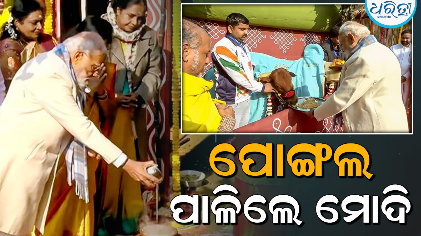 ପ୍ରଧାନମନ୍ତ୍ରୀ ମୋଦି ଏହି ପର୍ବ ଅବସରରେ ତାମିଲ ରୀତି ଅନୁସାରେ ପୂଜା କରିଥିଲେ। ଏହା ପରେ, ସେ ଏକ ଗାଈ ଏବଂ ଏକ ବାଛୁରୀକୁ ଘାସ ଖୁଆଇଥିଲେ ଏବଂ ସେମାନଙ୍କୁ ଫୁଲ ମାଳା ଦେଇ ପୂଜା କରିଥିଲେ।