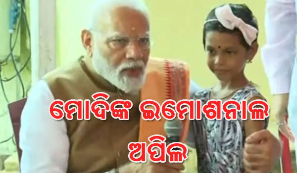 ଏହି ସମୟରେ ପ୍ରଧାନମନ୍ତ୍ରୀ ମୋଦି ଝିଅମାନଙ୍କୁ ଆଶୀର୍ବାଦ ଦେଇଥିବାବେଳେ ସେ ଅନେକ ଗୁରୁତ୍ୱପୂର୍ଣ୍ଣ ପ୍ରସଙ୍ଗରେ ମହିଳାଙ୍କ ସହ ସିଧାସଳଖ କଥା ହୋଇଥିଲେ। ଇତିମଧ୍ୟରେ ସେ ଏକ ଭାବପ୍ରବଣ ଆବେଦନ ମଧ୍ୟ କରିଥିଲେ। ସେ କହିଛନ୍ତି ଯେ ତୁମେ ସମସ୍ତେ ତୁମ ମା’ ପାଇଁ ଅତି କମରେ ଗୋଟିଏ ଚାରା ରୋପଣ କରିବା ଉଚିତ ଏବଂ ଏହାର ଯତ୍ନ ନେବା ଉଚିତ୍।