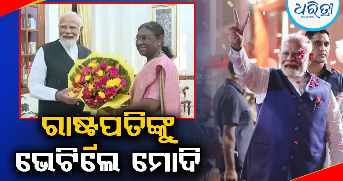 ନୂଆଦିଲ୍ଲୀ,୭।୬: ନ୍ୟାଶନାଲ ଡେମୋକ୍ରାଟିକ ଆଲାଏନ୍ସର ସଂସଦୀୟ ଦଳ ବୈଠକରେ ଶୁକ୍ରବାର ନରେନ୍ଦ୍ର ମୋଦିଙ୍କୁ ଏନ୍ଡିଏ ଦଳର ନେତା ଚୟନ କରାଯାଇଛି। ନେତା ଚୟନ ପରେ ପ୍ରଧାନମନ୍ତ୍ରୀ ମୋଦି ରାଷ୍ଟ୍ରପତି ଦ୍ରୌପଦୀ ମୁର୍ମୁଙ୍କୁ ଭେଟିଛନ୍ତି। ଏହି ଅବସରରେ ପ୍ରଧାନମନ୍ତ୍ରୀ ମୋଦି ରାଷ୍ଟ୍ରପତିଙ୍କୁ ପୁଷ୍ପଗୁଚ୍ଛ ପ୍ରଦାନ କରିଥିଲେ। ରାଷ୍ଟ୍ରପତି ମଧ୍ୟ ପ୍ରଧାନମନ୍ତ୍ରୀ ମୋଦିଙ୍କୁ ମହାପ୍ରଭୁ ଜଗନ୍ନାଥଙ୍କ ପ୍ରତିମୂର୍ତ୍ତି ପ୍ରଦାନ କରିଥିଲେ। ଏହି ଅବସରରେ ପ୍ରଧାନମନ୍ତ୍ରୀ ମୋଦି ସରକାର ଗଠନ ନେଇ ରାଷ୍ଟ୍ରପତିଙ୍କଠାରେ ଦାବି ଉପସ୍ଥାପନ କରିଥିଲେ।