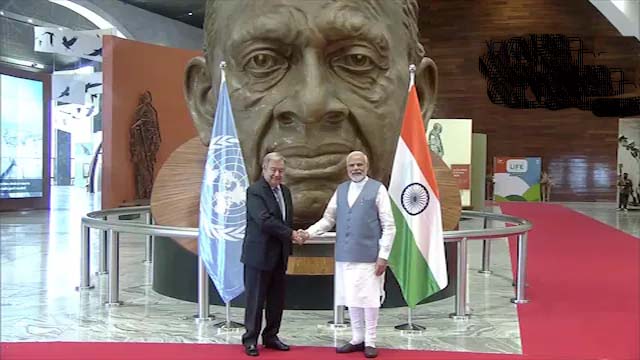ମୋଦି କେଭାଡିଆର ଏକତା ନଗରରେ ଥିବା ‘ଷ୍ଟାଚ୍ୟୁ ଅଫ ୟୁନିଟି’ରେ ଆଣ୍ଟୋନିଓ ଗୁଟେରସଙ୍କ ଉପସ୍ଥିତିରେ ‘ମିଶନ ଲାଇଫ ’(ପରିବେଶ ପାଇଁ ଜୀବନଶୈଳୀ) ଆରମ୍ଭ କରିଥିଲେ। ଏହି ମିଶନ ଏକ ତ୍ରିସ୍ତରୀୟ ରଣନୀତି ପ୍ରୟୋଗ କରି ଜଳବାୟୁ ପରିବର୍ତ୍ତନର ପ୍ରଭାବକୁ ମୁକାବିଲା କରିବାକୁ ଲକ୍ଷ୍ୟ ରଖିଛି।