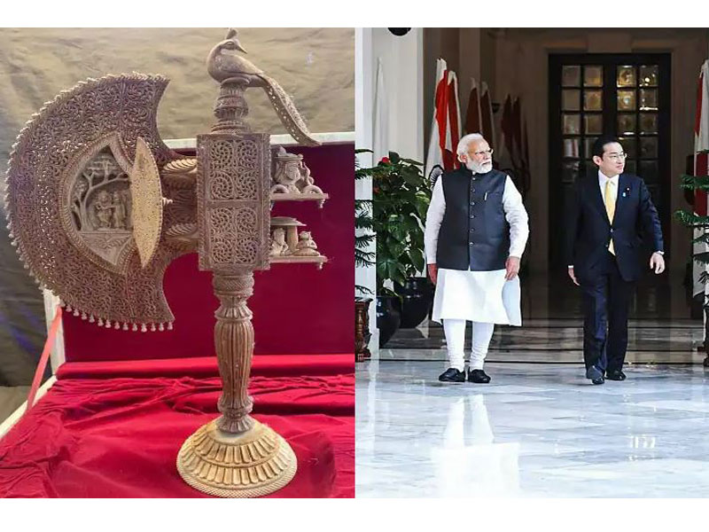 ନୂଆଦିଲ୍ଲୀ,୨୦।୩ : ପ୍ରଧାନମନ୍ତ୍ରୀ ନରେନ୍ଦ୍ର ମୋଦି ଭାରତ ଗସ୍ତରେ ଆସିଥିବା ଜାପାନ ପ୍ରଧାନମନ୍ତ୍ରୀ ଫୁମିୟୋ କିଶିଦାଙ୍କୁ ’କୃଷ୍ଣ ପଙ୍ଖି’ ଉପହାର ଦେଇଛନ୍ତି। ଏହା ଚନ୍ଦନ କାଠରେ ନିର୍ମିତ ଏବଂ ଏହାର ପାର୍ଶ୍ୱରେ ଭଗବାନ ଶ୍ରୀକୃଷ୍ଣଙ୍କର ବିଭିନ୍ନ ସ୍ଥିତିକୁ ଚିତ୍ରଣ କରୁଥିବା କଳାକୃତି ଚିତ୍ର ରହିଛି।