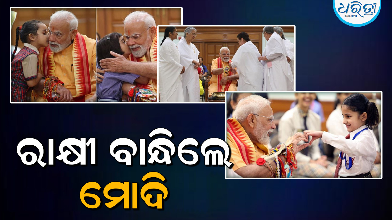 ପ୍ରଧାନମନ୍ତ୍ରୀ ମୋଦି ଦିଲ୍ଲୀର ପ୍ରଧାନମନ୍ତ୍ରୀ ବାସଭବନ ୭ ଲୋକ କଲ୍ୟାଣ ମାର୍ଗରେ ରକ୍ଷା ବନ୍ଧନ ପାଳନ କରିଥିଲେ। ଏହି ସମୟରେ ବ୍ରହ୍ମା କୁମାରୀ ଦିଦି ପ୍ରଧାନମନ୍ତ୍ରୀ ମୋଦିଙ୍କୁ ରାକ୍ଷୀ ବାନ୍ଧିଥିଲେ। ଏହା ବ୍ୟତୀତ ଛୋଟ ଝିଅମାନେ ମଧ୍ୟ ପ୍ରଧାନମନ୍ତ୍ରୀ ମୋଦିଙ୍କୁ ରାକ୍ଷୀ ବାନ୍ଧିଥିଲେ। ପ୍ରଧାନମନ୍ତ୍ରୀ ସ୍କୁଲ ପୋଷାକ ପିନ୍ଧିଥିବା ସ୍କୁଲ ଝିଅମାନଙ୍କ ସହିତ ହୃଦୟସ୍ପର୍ଶୀ ଫଟୋ ଉଠାଇଥିଲେ।