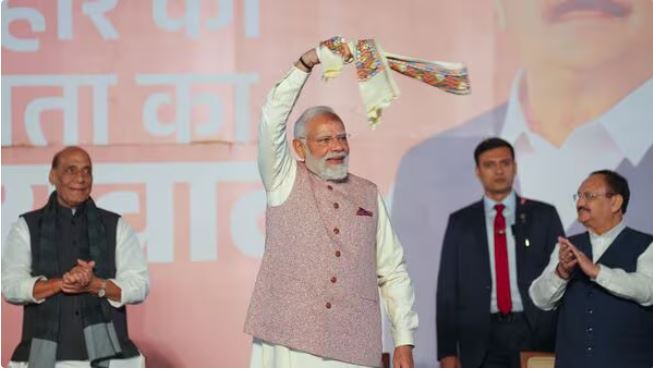 ବିହାର ନିର୍ବାଚନରେ ଐତିହାସିକ ବିଜୟକୁ ପାଳନ କରି, ଭାଜପା କର୍ମୀ ଏବଂ ନେତାମାନେ ପ୍ରଧାନମନ୍ତ୍ରୀ ନରେନ୍ଦ୍ର ମୋଦିଙ୍କୁ ଭବ୍ୟ ସୱାଗତ କରିଥିଲେ ଏବଂ ସେମାନଙ୍କର କୃତଜ୍ଞତା ଜଣାଇଥିଲେ। ପ୍ରଧାନମନ୍ତ୍ରୀ ବିହାରୀ ଶୈଳୀରେ ଗାମୁଛା (ସ୍କାର୍ଫ) ହଲାଇ ବିହାରର ଜନସାଧାରଣଙ୍କୁ ଏନଡିଏର ବିଜୟର ବାର୍ତ୍ତା ଦେଇଥିଲେ। ତା’ପରେ ସେ ମଞ୍ଚ ଉପରକୁ ଉଠି ଭାଜପା କର୍ମୀମାନଙ୍କୁ ସମ୍ବୋଧିତ କରିଥିଲେ।