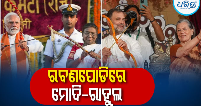 ସେ ମଧ୍ୟ ଧନୁ ତୀର ଧାରଣ କରି ରାବଣପୋଡି ଉତ୍ସବକୁ ଆରମ୍ଭ କରିଥିଲେ । ଦଶହରା ଅବସରରେ ଦେଶର ଦୁଇ ରାଜନେତାଙ୍କ କିଛି ଫଟୋ ଭାଇରାଲ ହେବାରେ ଲାଗିଛି । ଦେଶବ୍ୟାପୀ ମା’ଙ୍କ ପୂଜା ପାଇଁ ସବୁଠି ଚଳଚଞ୍ଚଳ। ଶନିବାର ରାତିରେ ଦେଶର ବିଭିନ୍ନ ସ୍ଥାନରେ ରାବଣପୋଡି ଉତ୍ସବ ଆୟୋଜିତ ହୋଇଥିବା ବେଳେ ରବିବାର ଅନ୍ୟ କେତେକ ସ୍ଥାନରେ ରବଣ ପୋଡ଼ି ହେବ।