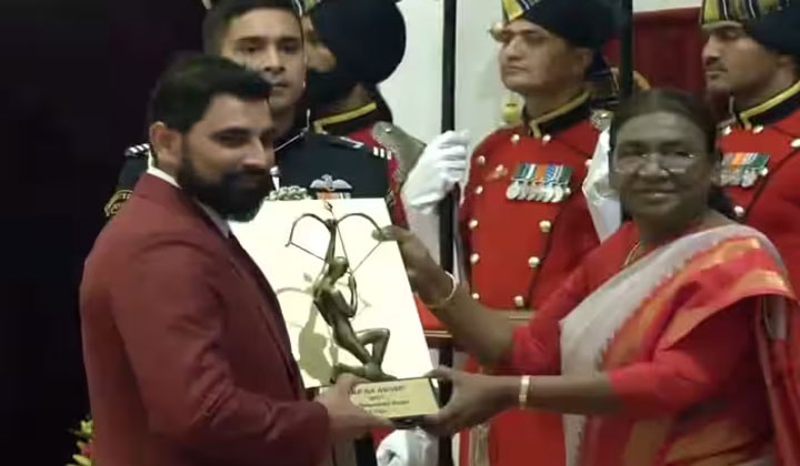 ନୂଆଦିଲ୍ଲୀ,୯।୧: ଅର୍ଜୁନ ପୁରସ୍କାର ପାଇବାରେ ଭାରତୀୟ କ୍ରିକେଟର ମହମ୍ମଦ ଶାମି ୫୮ ତମ କ୍ରିକେଟର ହୋଇଛନ୍ତି। ଆଜି ତାଙ୍କୁ ଏହି ବଡ କ୍ରୀଡା ପୁରସ୍କାର ପ୍ରଦାନ କରାଯାଇଛି। ରାଷ୍ଟ୍ରପତି ଦ୍ରୌପଦୀ ମୁର୍ମୁ ତାଙ୍କୁ ଏହି ପୁରସ୍କାରରେ ସମ୍ମାନିତ କରିଛନ୍ତି।