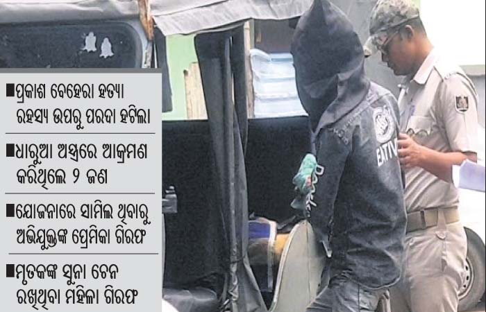 ପୋଲିସ କହିଛି, ହୁଲୁରୁସିଂହାର ପ୍ରକାଶଙ୍କୁ ଗତ ଶୁକ୍ରବାର ରାତିରେ ଘାଷିସାହି ଖେଳପଡ଼ିଆଠାରେ ଗୋଡ଼ାଇ ଗୋଡ଼ାଇ ହାଣି ହତ୍ୟା କରାଯାଇଥିଲା। ଏ ନେଇ ତାଙ୍କ ସ୍ତ୍ରୀ ରିଙ୍କି ବେହେରା ଥାନାରେ ଅଭିଯୋଗ କରିବା ପରେ ନଂ. ୨୦୦/୨୩ରେ ମାମଲା ରୁଜୁ ସହ ତଦନ୍ତ ଆରମ୍ଭ କରାଯାଇଥିଲା। ପ୍ରକାଶଙ୍କ ମୋବାଇଲକୁ କେଉଁମାନେ କଲ୍ କରିଥିଲେ ସେଠାରୁ ହିଁ ଖୋଳତାଡ କରାଯାଇଥିଲା। କଲ୍ ଡିଟେଲ୍ସରୁ ମୁଖ୍ୟ ଅଭିଯୁକ୍ତ ବାବୁ ଓ ଜଣେ ମହିଳାଙ୍କ ଫୋନରୁ ମଧ୍ୟ କଲ୍ ଆସିଥିବା ଜଣାପଡ଼ିଥିଲା। ତାହାକୁ ଆଧାର କରି ତଦନ୍ତ ଆଗକୁ ବଢ଼ିଥିଲା। ପ୍ରଥମେ ବାବୁଙ୍କୁ ଥାନାକୁ ଆଣି ପଚରା ଉଚରା କରାଯାଇଥିଲା। ସେ ଏଥିରେ ସମ୍ପୃକ୍ତ ନ ଥିବା ପ୍ରଥମେ କହିଥିଲେ। ଅଧିକ ପଚରା ଉଚରା ପରେ ସେ ଏକା ଏହି ହତ୍ୟାକାଣ୍ଡ ଘଟାଇଥିବା କହିଥିଲେ। ଏହାପରେ ତାଙ୍କୁ ଗିରଫ କରାଯାଇ କୋର୍ଟଚାଲାଣ କରାଯାଇଥିଲା। କିନ୍ତୁ ରିମାଣ୍ଡରେ ଆଣି ଅଧିକ ଜେରା ପରେ ହତ୍ୟା ଘଟଣା ଉପରୁ ସମ୍ପୂର୍ଣ୍ଣ ପରଦା ଉଠିଥିଲା। ପ୍ରକାଶଙ୍କର ଏକ ବ୍ରଏଲର ପଏଣ୍ଟ ଥିଲେ ବି ସେ ଓ ବାବୁ ମିଶି ଚୋରା ମଦ ବ୍ୟବସାୟ କରୁଥିଲେ। ହେଲେ ଲାଭ ଟଙ୍କାକୁ ନେଇ ତିକ୍ତତା ଦେଖାଦେଇଥିଲା। ପ୍ରକାଶ ଲାଭ ଟଙ୍କା ବାବୁଙ୍କୁ ଦେଇ ନ ଥିଲେ। ବିଭିନ୍ନ ଆଳ ଦେଖାଇ ଦିନ ଗଡ଼ାଇ ଚାଲିଥିଲେ। ଫଳରେ ବାବୁ ପ୍ରତିଶୋଧ ନେବାକୁ ସୁଯୋଗ ଖୋଜୁଥିଲେ। ଇତିମଧ୍ୟରେ ବାବୁଙ୍କ ବାନ୍ଧବୀଙ୍କ ସହ ପ୍ରକାଶଙ୍କ ସମ୍ପର୍କ ଗଢ଼ି ଉଠିଥିଲା। ଏହା ବାବୁଙ୍କୁ ଆହୁରି ରକ୍ତମୁଖା କରିଦେଇଥିଲା। ଶୁକ୍ରବାର ରାତିରେ ବାବୁ କୌଣସି କଥା କହି ପ୍ରକାଶଙ୍କୁ ଘାଷିସାହି ଖେଳପଡ଼ିଆକୁ ଡାକିଥିଲେ। ସେଠାରେ ତାଙ୍କୁ ମୋବାଇଲରେ କିଛି ଦେଖାଇଥିଲେ। ପ୍ରକାଶ ମୋବାଇଲ ଦେଖିବା ସମୟରେ ବାବୁ ଏକ ଧାରୁଆ ଅସ୍ତ୍ରରେ ଆକ୍ରମଣ କରିଥିଲେ। ପ୍ରକାଶ ଦୌଡ଼ି ଚାଲିଯିବାକୁ ବସିଥିବାବେଳେ ପୂର୍ବରୁ ଲୁଚି ରହିଥିବା ବାବୁଙ୍କ ସହଯୋଗୀ କାହ୍ନୁ ତାଙ୍କୁ ଆଉ ଏକ ଧାରୁଆ ଅସ୍ତ୍ରରେ ଆକ୍ରମଣ କରିଥିଲେ। ଏହାପରେ ବାବୁ ଓ କାହ୍ନୁ ଦୁହେଁ ମିଶି ଗୋଡ଼ାଇ ଗୋଡ଼ାଇ ହାଣି ଚାଲିଥିଲେ। ପ୍ରକାଶଙ୍କ ମୃତ୍ୟୁ ହୋଇଯିବା ପରେ ଦୁଇ ଅଭିଯୁକ୍ତ ବ୍ୟବହୃତ ଅସ୍ତ୍ରକୁ ଲିଙ୍ଗରା ନାଳରେ ଲୁଚାଇ ପଳାଇ ଯାଇଥିଲେ। କିଛି ସମୟ ପରେ ବାବୁ ଘଟଣାସ୍ଥଳକୁ ଆସି ଅନ୍ୟମାନଙ୍କ ପରି ପ୍ରକାଶଙ୍କ ମୃତଦେହ ଦେଖିଥିଲେ। ବାବୁ ଧରାପଡ଼ିବା ପରେ ପ୍ରକାଶଙ୍କ ସୁନା ଚେନ୍ ଜଣେ ମହିଳାଙ୍କ ନିକଟରେ ଲୁଚାଇଥିବା ପୋଲିସକୁ କହିଥିଲେ। ପୋଲିସ ଉକ୍ତ ସୁନା ଚେନ୍ ଜବତ କରିବା ସହ ସମ୍ପୃକ୍ତା ମହିଳାଙ୍କୁ ଗରିଫ କରିଥିଲା। ଅଭିଯୁକ୍ତଙ୍କ ବାନ୍ଧବୀ ହତ୍ୟା ଯୋଜନା ସମ୍ପର୍କରେ ଅବଗତ ରହିବା ସହ ସେଥିରେ ସାମିଲ ଥିବାରୁ ତାଙ୍କୁ ମଧ୍ୟ ଗିରଫ କରାଯାଇଥିଲା। ଘଟଣାର ତଦନ୍ତ ଏସ୍ଆଇ ଶଶିଭୂଷଣ ବେହେରାଙ୍କୁ ପ୍ରଦାନ କରାଯାଇଥିବା ପୋଲିସ ପ୍ରକାଶ କରିଛି।