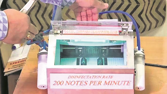 ଲକ୍ଷ୍ନୌ: ଆଜିକାଲି ମେଶିନରେ ଖୁବଶୀଘ୍ର ଟଙ୍କା ଗଣିବା କାମ କରିହେଉଛି। କିନ୍ତୁ ଟଙ୍କା ଗଣିବା ସହିତ ଏହାକୁ ସାନିଟାଇଜ୍ ବି କରିହେବ। ଏଭଳି ଏକ ଭିନ୍ନ ମେଶିନ୍ ତିଆରି କରିଛନ୍ତି ଉତ୍ତରପ୍ରଦେଶ ଲକ୍ଷ୍ନୌରେ ଥିବା ଏପିଜେ ଅବଦୁଲ କଲାମ୍ ଟେକ୍ନିକାଲ୍ ୟୁନିଭର୍ସିଟିର ଅନୁଜ ଶର୍ମା ଓ ତାଙ୍କ ଟିମ୍। ଅନୁଜ ଟଙ୍କା ଗଣିବା ପାଇଁ ଏଭଳି ଏକ ମେଶିନ ତିଆରି କରିଛନ୍ତି ଯାହା ଏକ ମିନିଟରେ ୨୦୦ଟି ନୋଟ୍ ଗଣି ପାରୁଛି ଏବଂ ଏକ ସମୟରେ ନୋଟ୍ଗୁଡ଼ିକୁ ସାନିଟାଇଜ୍ କରିଦେଉଛି।