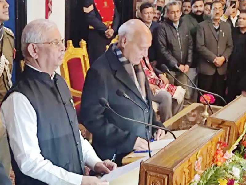 ଶିମଲା,୮।୧ : ହିମାଚଳ ପ୍ରଦେଶର ମୁଖ୍ୟମନ୍ତ୍ରୀ ସୁଖବିନ୍ଦର ସିଂ ସୁଖୁଙ୍କ କ୍ୟାବିନେଟ ରବିବାର ସମ୍ପ୍ରସାରିତ ହୋଇଛି। ସର୍ବଶେଷ ତଥ୍ୟ ଅନୁଯାୟୀ ରାଜ୍ୟପାଳ ରାଜେନ୍ଦ୍ର ବିଶ୍ୱନାଥ ଆର୍ଲେକର ୭ଜଣ ବିଧାୟକଙ୍କୁ ମନ୍ତ୍ରୀ ଭାବେ ଶପଥ ପାଠ କରାଇଛନ୍ତି। ସର୍ବପ୍ରଥମେ, ସୋଲାନର ସର୍ବ ପୁରାତନ ବିଧାୟକ ଧନି ରାମ ଶାଣ୍ଡିଲ୍ୟ ଶପଥ ଗ୍ରହଣ କରିଥିଲେ। ଏହା ପରେ ସିରମୌର ଶିଲାଇରୁ ୬ଥର ବିଧାୟକ ହୋଇଥିବା ହର୍ଷବର୍ଦ୍ଧନ ଚୌହ୍ବାନ, କିନ୍ନରର ପୂର୍ବତନ ଡେପୁଟି ସ୍ପିକର ଜଗତ ସିଂ ନେଗି , ଶିମଲା ଗ୍ରାମ୍ୟର ବିକ୍ରମାଦିତ୍ୟ ସିଂ, କଙ୍ଗଡର ଜବାଲିରୁ ଚନ୍ଦର କୁମାର, କୁସମପଟ୍ଟିରୁ ଅନିରୁଦ୍ଧ ସିଂ ଏବଂ ଜୁବଲ-କୋଟଖାଇର ଚାରିଥର ବିଧାୟକ ରୋହିତ ଠାକୁର ପ୍ରମୁଖ ମନ୍ତ୍ରୀ ଭାବରେ ପଦ ଓ ଗୋପନୀୟତାର ଶପଥ ପାଠ କରିଛନ୍ତି।