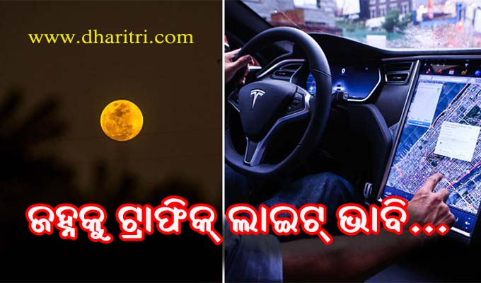 ଜହ୍ନକୁ ଟ୍ରାଫିକ ଲାଇଟ୍‌ ଭାବି ରାସ୍ତାରେ ଅଟକିଲା କାର୍‌, ଭିଡିଓ ଦେଖିଲେ…