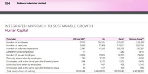 ଗତ ଆର୍ଥିକ ବର୍ଷରେ ଅର୍ଥାତ୍ ୨୦୨୨-୨୩ରେ, ରିଲାଏନ୍ସ ଇଣ୍ଡଷ୍ଟ୍ରିଜର ୧.୬ ଲକ୍ଷରୁ ଅଧିକ କର୍ମଚାରୀ କମ୍ପାନୀରୁ ଇସ୍ତଫା ଦେଇଛନ୍ତି। ଅବଶ୍ୟନ୍ କମ୍ପାନୀର ନୂତନ ନିଯୁକ୍ତି ସଂଖ୍ୟା ମଧ୍ୟ ଭଲ ଥିଲା ଏବଂ ଗତ ଆର୍ଥିକ ବର୍ଷରେ ରିଲାଏନ୍ସ ଜିଓ ୭୦,୪୧୮ ନୂତନ କର୍ମଚାରୀଙ୍କୁ ନିଯୁକ୍ତି ଦେଇଛି। ଏହି ଟେଲିକମ ଅପରେଟରରେ ୯୫୩୨୬ କର୍ମଚାରୀ କାମ କରନ୍ତି। କମ୍ପାନୀ ଏହାର କର୍ମଚାରୀମାନଙ୍କୁ ସମୁଦାୟ ୧,୪୩,୪୩୯,୮୩୯ ଘଣ୍ଟା ତାଲିମ ଦେଇଛି।