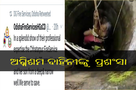 ଛତ୍ରପୁର,୩୧।୮(ଡି.ଏନ୍.ଏ.): ଗଞ୍ଜାମ ଜିଲା ଛତ୍ରପୁର ବ୍ଲକ ପୋଡାପଦର ପଞ୍ଚାୟତ ଅଧୀନ କୁମାରବେଗପଲ୍ଲୀ ଗ୍ରାମରେ ରବିବାର ଏକ ଖୋଲା କୂଅ ଭିତରେ ପଡ଼ିଯାଇଥିବା ବୃଦ୍ଧା ମା’ଙ୍କୁ ଉଦ୍ଧାର କରିବାକୁ ଯାଇ ପୁଅ ମଧ୍ୟ କୂଅକୁ ଡେଇଁ ପଡ଼ିଥିଲେ। ପରେ ଖବରପାଇ ଛତ୍ରପୁର ଅଗ୍ନିଶମ ବାହିନୀ ସେଠାରେ ପହଞ୍ଚି ଉଭୟଙ୍କୁ ଉଦ୍ଧାର କରିଥିଲେ। ଏ ନେଇ ସୋମବାର ଛତ୍ରପୁର ଫାୟାର ସେବା ଟିମ୍ କାର୍ଯ୍ୟକୁ ଡିଜି ( ଫାୟାର ସେବା ) ଟୁଇଟ୍ କରି ପ୍ରଶଂସା କରିଛନ୍ତି। ୩୦ ଫୁଟ ଗଭୀର କୂଅରୁ ଉଭୟଙ୍କୁ ସୁରକ୍ଷିତ ଉଦ୍ଧାର ଅଭିଜ୍ଞସମ୍ପର୍ଣ୍ଣ ଛତ୍ରପୁର ଫାୟାର ସେବା ଟିମ୍ର ଚମତ୍କାର ପ୍ରଦର୍ଶନ ବୋଲି ସେ ଉକ୍ତ ଟୁଇଟରେ ଲେଖିଛନ୍ତି।