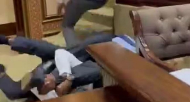 ଏହି ସମୟରେ, ନ୍ୟୁଜ ଚ୍ୟାନେଲ ଆଧାଧୁ ଏହି ଘଟଣାର ଏକ ଭିଡିଓ ଜାରି କରିଛି ଯେଉଁଥିରେ ଏମଡିପି ସାଂସଦ ଇସା ଏବଂ ପିଏନସି ସାଂସଦ ଅବଦୁଲ୍ଲା ରହିମ ଅବଦୁଲ ହାକିମଙ୍କ ଲଢେଇ ଦେଖିବାକୁ ମିଳିବ। ଭିଡିଓ ଫୁଟେଜରେ ଏହା ଦେଖାଯାଉଛି ଯେ ଶାହିମ ଇସାଙ୍କ ଗୋଡକୁ ଧରି ତଳେ ପଡ଼ିଯାଇଥିଲେ ଏବଂ ପରେ ଇସା ଶାହିମଙ୍କୁ ବେକରେ ବାଡେଇ କେଶ ଟାଣିଥିଲେ। ଏହି ଘଟଣାରେ ଆହତ ସାଂସଦ ଶାହିମଙ୍କୁ ଚିକିତ୍ସା ପାଇଁ ଆମ୍ବୁଲାନ୍ସରେ ଡାକ୍ତରଖାନା ନିଆଯାଇଛି।