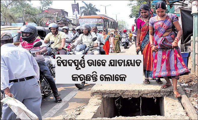 କେନ୍ଦୁଝର,୧୬ା୩(ସ୍ବ.ପ୍ର.): କେନ୍ଦୁଝର ଜିଲାପାଳଙ୍କ କାର୍ଯ୍ୟାଳୟ ଆଗରେ ମୁଖ୍ୟ ଡ୍ରେନ ଦୀର୍ଘ ବର୍ଷ ହେଲା ଭାଙ୍ଗି ମୁକୁଳା ଅବସ୍ଥାରେ ରହିଛି। ଅସୁରକ୍ଷିତ ଅବସ୍ଥାରେ ପଡ଼ି ରହିଥିଲେ ହେଁ ଏଥିପ୍ରତି କାହାରି ନଜର ପଡୁନାହିଁ। ବିପଦପୂଣ୍ଣର୍ର୍ ଅବସ୍ଥାରେ ଯାତାୟାତ କରୁଥିବା ବେଳେ ଅନେକ ସମୟରେ ଡ୍ରେନ୍ରେ ପଡ଼ି ବହୁ ଲୋକ ଖଣ୍ଡିଆ ଖାବରା ହେଉଛନ୍ତି। ଅନେକ ସମୟରେ ଟ୍ରାଫିକ ସତ୍ତ୍ୱେ ଡ୍ରେନରୁ ତଳକୁ ଓହ୍ଲାଇ ରାସ୍ତାରେ ଚଳାଚଳ କରୁଥିବାରୁ ଦୁର୍ଘଟଣାର ଆଶଙ୍କା ରହୁଛି ବୋଲି ବରିଷ୍ଠ ଖବରଦାତା ପ୍ରଦୀପ ମହାନ୍ତି କହିଛନ୍ତି।