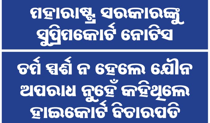 ନୂଆଦିଲ୍ଲୀ,୨୮।୧(ପି.ଟି.): ପୋକ୍ସୋ (ଯୌନ ଅପରାଧରୁ ଶିଶୁଙ୍କ ସୁରକ୍ଷା) ଆଇନ ଅନୁଯାୟୀ ଚର୍ମକୁ ସ୍ପର୍ଶ ନ କରି ନାବାଳିକାଙ୍କ ବକ୍ଷସ୍ଥଳ ଛୁଇଁବା ଯୌନ ଅପରାଧ ନୁହେଁ ବୋଲି ବମ୍ବେ ହାଇକୋର୍ଟର ନାଗପୁର ବେଞ୍ଚ୍ କହିବା ସହ ଜଣେ ଅଭିଯୁକ୍ତଙ୍କୁ ଦୋଷମୁକ୍ତ କରିଦେଇଥିଲେ। ଏଭଳି ରାୟକୁ ନେଇ ବିଭିନ୍ନ ମହଲରେ ସମାଲୋଚନା ହୋଇଥିଲା। ପ୍ରଧାନ ବିଚାରପତି ଏସ୍.ଏ. ବୋବ୍ଡେ, ଜଷ୍ଟିସ ଏ.ଏସ୍. ବୋପାନ୍ନା ଏବଂ ଭି. ରାମସୁବ୍ରମଣ୍ୟନ୍ଙ୍କ ଖଣ୍ଡପୀଠରେ ଆଟର୍ନି ଜେନେରାଲ କେ.କେ. ବେଣୁଗୋପାଳ ଏହା ଉପସ୍ଥାପନ କଲା ପରେ ସୁପ୍ରିମକୋର୍ଟ ବୁଧବାର ଏହା ଉପରେ ସ୍ଥଗିତାଦେଶ ଜାରି କରିଛନ୍ତି। ସର୍ବୋଚ୍ଚ ଅଦାଲତ ମହାରାଷ୍ଟ୍ର ସରକାରଙ୍କୁ ନୋଟିସ