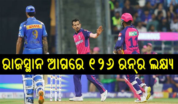 ମୁମ୍ବାଇ, ୧।୪: ଆଇପିଏଲର ୧୪ ତମ ମ୍ୟାଚ ରାଜସ୍ଥାନ ରୟାଲ୍ସ ଏବଂ ମୁମ୍ବାଇ ଇଣ୍ଡିଆନ୍ସ ମଧ୍ୟରେ ମୁମ୍ବାଇର ଓ୍ବାଙ୍ଖଡେ ଷ୍ଟାଡିୟମରେ ଖେଳାଯାଉଛି। ମୁମ୍ବାଇ ଦଳ ପ୍ରଥମେ ବ୍ୟାଟିଂ କରିବାକୁ ଆସି ୨୦ ଓଭରରେ ୯ ଉଇକେଟ୍ ହରାଇ ୧୨୫ ରନ୍ ସଂଗ୍ରହ କରିଛି। ଫଳରେ ରାଜସ୍ଥାନ ଆଗରେ ୧୨୬ ରନ୍ର ଲକ୍ଷ୍ୟ ରହିଛି। ଏହି ସମୟରେ ମୁମ୍ବାଇ ପାଇଁ କ୍ୟାପଟେନ ହାର୍ଦ୍ଦିକ ପାଣ୍ଡ୍ୟା ସର୍ବାଧିକ ରନ୍ ସଂଗ୍ରହ କରିଥିବା ବେଳେ ୨୯ଟି ବଲରେ ୩୨ ରନ୍ କରିଛନ୍ତି ତଳକ ବର୍ମା। ଏହା ବ୍ୟତୀତ ମୁମ୍ବାଇ ଇଣ୍ଡିଆନ୍ସର ବାକି ବ୍ୟାଟରମାନେ ନିରାଶ ହୋଇଛନ୍ତି।