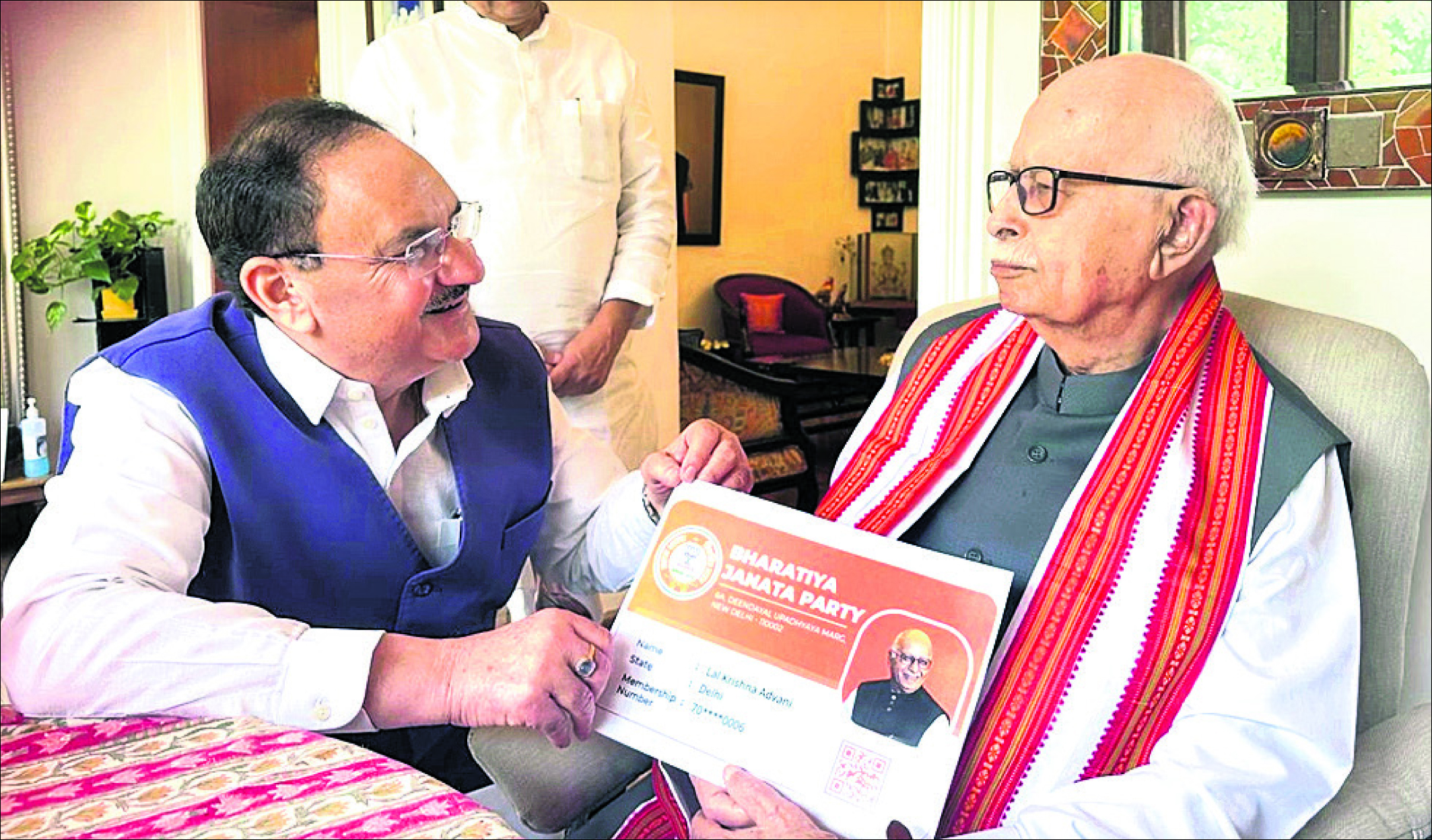 ନୂଆଦିଲ୍ଲୀ,୬ା୯:ଭାଜପା ରାଷ୍ଟ୍ରୀୟ ଅଧ୍ୟକ୍ଷ ଜେ.ପି. ନଡ୍ଡା ଗୁରୁବାର ପୂର୍ବତନ ଉପପ୍ରଧାନମନ୍ତ୍ରୀ ଲାଲ୍କୃଷ୍ଣ ଆଡଭାନୀଙ୍କ ବାସଭବନକୁ ଯାଇ ତାଙ୍କ ଦଳୀୟ ସଦସ୍ୟତାକୁ ନବୀକରଣ କରାଇବା ସହ ସାର୍ଟିଫିକେଟ ପ୍ରଦାନ କରିଛନ୍ତି। ନଡ୍ଡାଙ୍କ ସହ ଭାଜପା ସାଧାରଣ ସମ୍ପାଦକ ଦୁଷ୍ୟନ୍ତ କୁମାର ଗୌତମ ମଧ୍ୟ ଆଡଭାନୀଙ୍କ ବାସଭବନକୁ ଯାଇଥିଲେ। ସେପ୍ଟେମ୍ବର ୨ରେ ପ୍ରଧାନମନ୍ତ୍ରୀ ନରେନ୍ଦ୍ର ମୋଦି ଭାଜପାର ସଦସ୍ୟ ସଂଗ୍ରହ ଅଭିଯାନ ଶୁଭାରମ୍ଭ କରିବା ସହ ନିଜ ସଦସ୍ୟତାକୁ ନବୀକରଣ କରାଇଥିଲେ। ଦଳର ଏହି ସଦସ୍ୟତା ଅଭିଯାନ କେବଳ ଏକ ରୀତି ନୁହେଁ, ପରିବାରର ସମ୍ପ୍ରସାରଣ ଏବଂ ଆଦର୍ଶଗତ ଆନ୍ଦୋଳନ ବୋଲି ମୋଦି କହିଥିଲେ। ସେହିପରି ଗୁରୁବାର ବର୍ଷୀୟାନ ନେତା ମୁରଲୀ ମନୋହର ଜୋଷୀଙ୍କୁ ମଧ୍ୟ ଭାଜପା ସଦସ୍ୟତା ସାର୍ଟିଫିକେଟ ପ୍ରଦାନ କରାଯାଇଛି।
