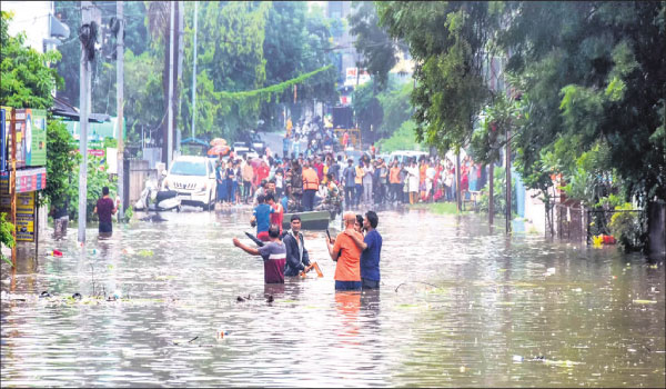 ନାଗୁପର,୨୪।୯: ମୁଷଳଧାରାରେ ବର୍ଷା ଯୋଗୁ ନାଗପୁରରେ ବନ୍ୟା ପରିସ୍ଥିତି ସୃଷ୍ଟି ହୋଇଛି। ସହର ମଧ୍ୟରେ ୩ ଫୁଟରୁ ଅଧିକ ପାଣି ଭରି ରହିଛି। ଶୁକ୍ରବାର ରାତିରୁ ଆରମ୍ଭ ହୋଇଥିବା ମୁଷଳଧାରା ବର୍ଷା ନାଗପୁରବାସୀଙ୍କ ନିଦ ହଜାଇ ଦେଇଛି। ବର୍ଷା ଯୋଗୁ ରାସ୍ତା ଉପରେ ପାଣି ବହିବା ସହ ସାଧାରଣ ଜୀବନଯାତ୍ରା ପ୍ରଭାବିତ ହୋଇଛି। ସେହିପରି ନାଗ ଓ ପିଲି ନଦୀ ସଂଲଗ୍ନ ଅଞ୍ଚଳରେ ଥିବା ଘରଗୁଡ଼ିକରେ ପାଣି ପଶିଯାଇଛି। ନାଗପୁର ମ୍ୟୁନିସିପାଲିଟିର ଅଗ୍ନିଶମ ଓ ବିପର୍ଯ୍ୟୟ ପ୍ରଶମନ ବିଭାଗ କର୍ମଚାରୀଙ୍କ ସହ ଏସ୍ଡିଆର୍ଏଫ୍ ଯବାନମାନେ ପ୍ରଭାବିତ ଅଞ୍ଚଳରେ ପହଞ୍ଚି ଉଦ୍ଧାର କାର୍ଯ୍ୟ ଜାରି ରଖିଛନ୍ତି। ପାଣିପାଗ ବିଭାଗର ସୂଚନାନୁସାରେ ନାଗପୁର ବିମାନବନ୍ଦରରେ ଶନିବାର ସକାଳ ୫.୩୦ ସୁଦ୍ଧା ୧୦୬.୭ ମିଲିମିଟିର ବର୍ଷା ହୋଇଛି। ସକାଳୁ ବର୍ଷା ଲାଗି ରହିଥିବାରୁ ଟ୍ରାଫିକ୍ ସେବା ପ୍ରଭାବିତ ହୋଇଥିଲା। ସେହିପରି ବର୍ଷା ଯୋଗୁ ଜଣଙ୍କର ମୃତ୍ୟୁ ଘଟିଥିବାବେଳେ ଟ୍ରେନ୍, ବସ୍ ଓ ବିମାନ ସେବା ପ୍ରଭାବିତ ହୋଇଛି।