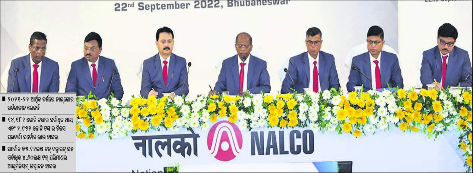 ଭୁବନେଶ୍ୱର,୨୩।୯:ଦେଶର ପ୍ରମୁଖ ରାଷ୍ଟ୍ରାୟତ୍ତ ଉଦ୍ୟୋଗ ନ୍ୟାଶନାଲ ଆଲୁମିନିୟମ କମ୍ପାନୀ ଲିମିଟେଡ୍ (ନାଲ୍କୋ)ର ୪୧ତମ ବାର୍ଷିକ ସାଧାରଣ ବୈଠକ (ଏଜିଏମ୍) ଗୁରୁବାର ଭୁବନେଶ୍ୱରଠାରେ ଆୟୋଜିତ ହୋଇଯାଇଛି। ଏହି ପରିପ୍ରେକ୍ଷୀରେ କମ୍ପାନୀର ଅଂଶୀଦାରମାନେ ୧୪,୧୮୧ କୋଟି ଟଙ୍କାର ସର୍ବାଧିକ ଆୟ ସାଙ୍ଗକୁ ବିକ୍ରୟ କାରବାର ଏବଂ ଟିକସ ପରବର୍ତ୍ତୀ ସର୍ବୋଚ୍ଚ ୨,୯୫୨ କୋଟି ଟଙ୍କାର ଲାଭ ଉଲ୍ଲିଖିତ ବାର୍ଷିକ ହିସାବ ଖାତାକୁ ୨୦୨୧-୨୨ ଆର୍ଥିକ ବର୍ଷ ପାଇଁ ମଞ୍ଜୁରୀ ପ୍ରଦାନ କରିଛନ୍ତି। ଫଳରେ ଏହାର ଇକ୍ୱିଟି ଶେୟାର ପିଛା ୧.୫୦ଟଙ୍କା ହିସାବରେ ଚୂଡ଼ାନ୍ତ ଲାଭାଂଶ ୩୦% ମଧ୍ୟ ପରିଷଦ ଅନୁମୋଦନ କରିଥିଲା। ଏଠାରେ ଘୋଷିତ ଓ ପୈଠ ହୋଇଥିବା ଅନ୍ତରୀଣ ଲାଭାଂଶ ଏବଂ ଏଜିଏମରେ ଅନୁମୋଦିତ ଚୂଡ଼ାନ୍ତ ଲାଭାଂଶ ସହ ମୋଟ୍ ଇକ୍ୱିଟି ଶେୟାର କ୍ୟାପିଟାଲର ୧୩୦% ଯାହା ଅଦ୍ୟାବଧି ସର୍ବାଧିକ ରହିଛି। ୨୦୨୧-୨୨ ଆର୍ଥିକ ବର୍ଷରେ ନାଲ୍କୋ ପ୍ରଥମ ଥର ପାଇଁ ନିଜର ସ୍ମେଲ୍ଟର ପ୍ଲାଣ୍ଟରେ ୯୬୦ଟି ପଟ୍କୁ କାର୍ଯ୍ୟକ୍ଷମ କରି ୧୦୦% କ୍ଷମତାର ଉପଯୋଗରେ ସର୍ବୋଚ୍ଚ ୪,୬୦,୦୦୦ ଟନ୍ ଆଲୁମିନିୟମ ଉପତ୍ାଦନ କରିଛି। ସେହିପରି କମ୍ପାନୀର ଦାମନଯୋଡ଼ିସ୍ଥିତ ଖଣି ଏବଂ ବିଶୋଧନ ପ୍ରକଳ୍ପରୁ ସର୍ବାଧିକ ୭୫,୧୧,୦୭୫ ଏମ୍ଟି ବକ୍ସାଇଟ୍ ଉପତ୍ାଦନ କରିଛି, ଯାହା କମ୍ପାନୀ ସ୍ଥାପନା ପରଠାରୁ ଏକ ସର୍ବକାଳୀନ ରେକର୍ଡ ବୋଲି କୁହାଯାଇଛି।