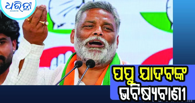 ପାଟନା,୬।୬: ବିହାରର ପୂର୍ଣ୍ଣିୟା ଲୋକ ସଭା ଆସନରୁ ସ୍ବାଧୀନ ଭାବେ ଜିତିଥିବା ପପୁ ଯାଦବ ଏକ ବଡ଼ ବିବୃତ୍ତି ଦେଇଛନ୍ତି। ଏନଡିଏ ସରକାର ଗଠନ ହେଲେ ମଧ୍ୟ ନରେନ୍ଦ୍ର ମୋଦି ପ୍ରଧାନମନ୍ତ୍ରୀ ହେବେ ନାହିଁ ବୋଲି ସେ ଭବିଷ୍ୟବାଣୀ କରିଛନ୍ତି।