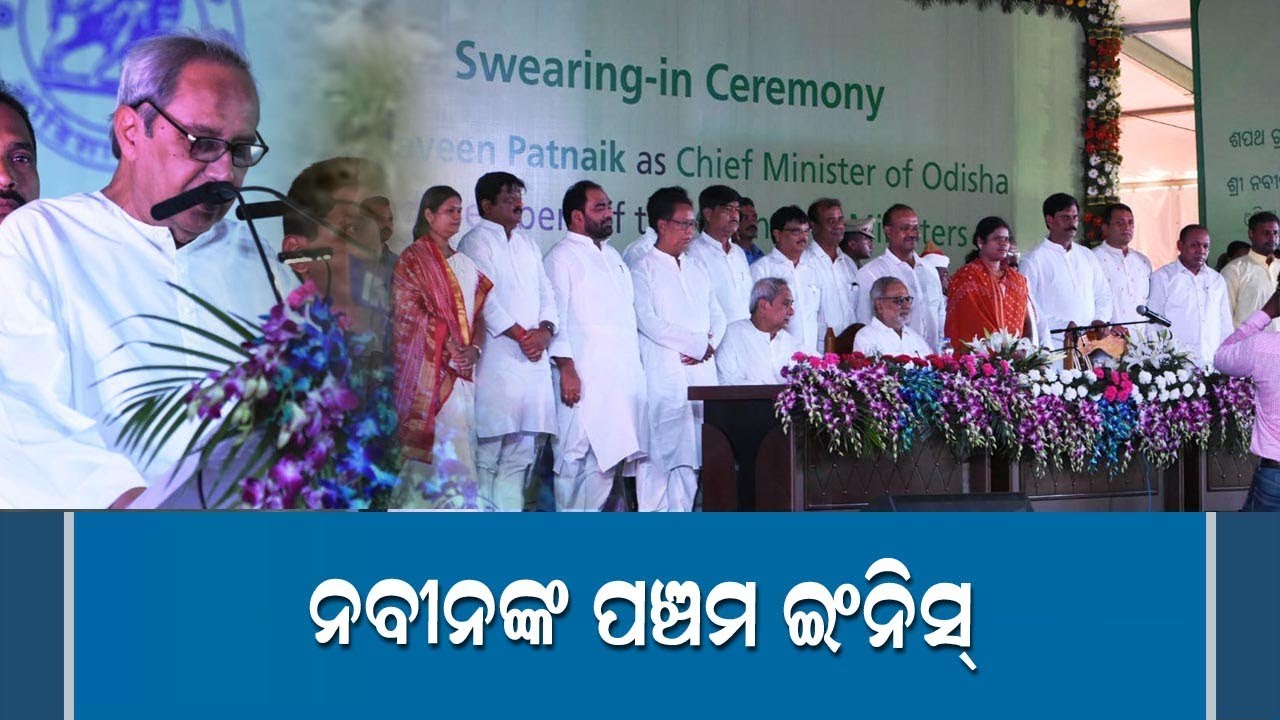 Biju Janata Dal (BJD) president Naveen Patnaik took oath for a record fifth time as Chief Minister of Odisha at an elaborate function organized at Exhibition Grounds here Wednesday morning. Patnaik was sworn-in to office and secrecy by Governor Ganeshi Lal.