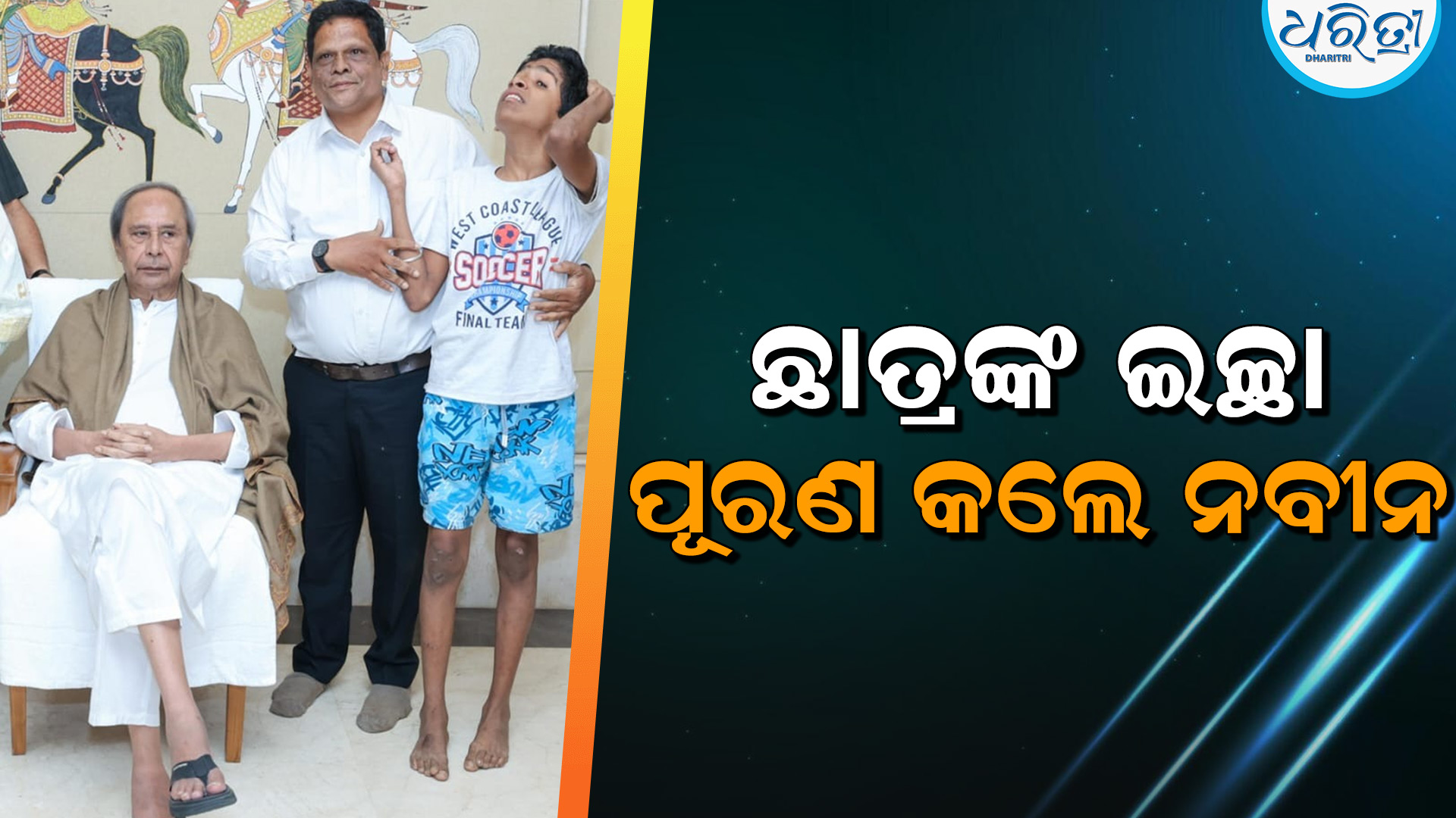 ଛତ୍ରପୁର,୩।୧(ଦିଲ୍ଲୀପ ସାମଲ): ବିରୋଧୀ ଦଳ ନେତା ତଥା ପୂର୍ବତନ ମୁଖ୍ୟମନ୍ତ୍ରୀ ନବୀନ ପଟ୍ଟନାୟକଙ୍କୁ ଦିବ୍ୟାଙ୍ଗ ଛାତ୍ର ସୁଗମ କୁମାର ପାଢ଼ୀ(ମୁରାରୀ) ଭେଟି ଖୁସି ଜାହିର କରିଛନ୍ତି । ସେ ଗଞ୍ଜାମ ଜିଲା ଛତ୍ରପୁର ସହରର ସତ୍ୟବାଦୀନଗର ନିବାସୀ ଆଇନଜୀବୀ ମନୋଜ କୁମାର ପାଢ଼ୀଙ୍କ ପୁତ୍ର।