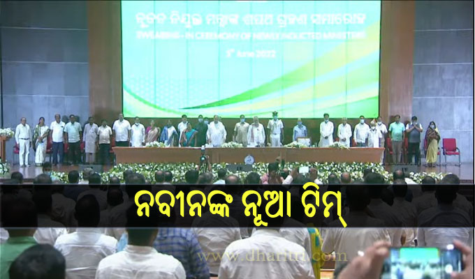 ଭୁବନେଶ୍ୱର,୫।୬(ବ୍ୟୁରୋ): ଶପଥ ନେଲେ ନବୀନଙ୍କ ନୂଆ ଟିମ୍। ରବିବାର ଲୋକ ସେବା ଭବନର କନ୍ଭେନ୍ସନ୍ ହଲ୍ରେ ଆୟୋଜିତ ଭବ୍ୟ ଶପଥ ଗ୍ରହଣ ସମାରୋହରେ ରାଜ୍ୟପାଳ ଗଣେଶୀ ଲାଲ ନୂଆ ମନ୍ତ୍ରୀମାନଙ୍କୁ ପଦ ଓ ଗୋପନୀୟତାର ଶପଥ ପାଠ କରାଇଛନ୍ତି। ନୂଆ ମନ୍ତ୍ରିମଣ୍ଡଳରେ ୧୩ଜଣଙ୍କୁ କ୍ୟାବିନେଟ ପାହ୍ୟା ଓ ୮ଜଣଙ୍କୁ ରାଷ୍ଟ୍ରମନ୍ତ୍ରୀ ପାହ୍ୟା ମିଳିିଛି।