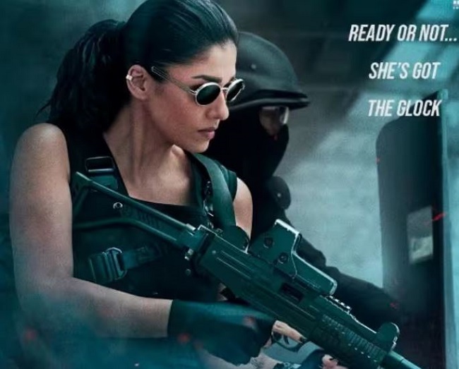 ଶାହାରୁଖ ଯେଉଁ ପୋଷ୍ଟର ଶେୟାର କରିଛନ୍ତି ସେଥିରେ ଅଭିନେତ୍ରୀଙ୍କ ଫାୟରୀ ଲୁକ ନଜର ଆସିଛି। ନୟନତାରା ହାତରେ ଗନ ଧରି ଫୁଲ ଅନ ଆକ୍ସନ ଅବତାରରେ ନଜର ଆସିଛନ୍ତି। ଏହାକୁ ଶେୟାର କରି ଶାହାରୁଖ ଲେଖିଛନ୍ତି, ‘ଓ୍ବହ ତୁଫାନସେ ପେହଲେ ଆନେ ଓ୍ବାଲି ଗଡଗଡାହଟ ହ! ନୟନତାରା।’