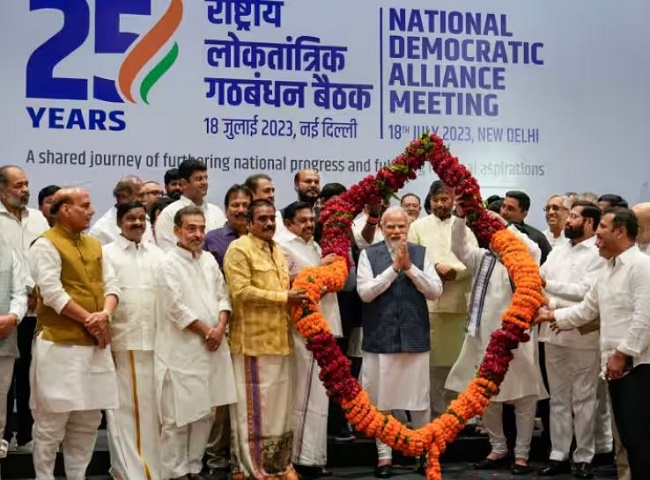 ନୂଆଦିଲ୍ଲୀ,୨୦।୭: ବିରୋଧୀ ଦଳ ନେତାଙ୍କ ବୈଠକର ଠିକ ପରେ ପରେ ଭାରତୀୟ ଜନତା ପାର୍ଟି(ଭାଜପା) ନେତୃତ୍ୱର ଏନଡିଏ ବୈଠକରେ ୨୦୨୪ ଲୋକ ସଭା ନିର୍ବାଚନକୁ ନେଇ ରଣନୀତି ପ୍ରସ୍ତୁତ କରାଯାଇଛି। ଏଥିରେ ପ୍ରଧାନମନ୍ତ୍ରୀ ନରେନ୍ଦ୍ର ମୋଦିଙ୍କ ସହ ମିଶି ସମସ୍ତ ଦଳ ବିଭିନ୍ନ ପ୍ରସଙ୍ଗ ଉପରେ ଚର୍ଚ୍ଚା କରିଛନ୍ତି। ଏବେ କୁହାଯାଉଛି କି ଏନଡିଏ ଏମପିଙ୍କର ୧୦ ଭିନ୍ନ ଭିନ୍ନ ଗ୍ରୁପ ହୋଇଛି। ପ୍ରତିଟି ଗ୍ରୁପ ପ୍ରଧାନମନ୍ତ୍ରୀଙ୍କ ସହ ବୈଠକ କରିବେ। ଏଥିରେ ସମସ୍ତ ଏମପି ନିଜ ନିଜ ନିର୍ବାଚନ ମଣ୍ଡଳିକୁ ନେଇ ପ୍ରଧାନମନ୍ତ୍ରୀଙ୍କୁ ସୂଚନା ପ୍ରଦାନ କରିବେ। ଏହାସହ ୨୦୨୪ ପାଇଁ ରଣନୀତି ପ୍ରସ୍ତୁତ କରିବାକୁ ସହଜ ହେବ।